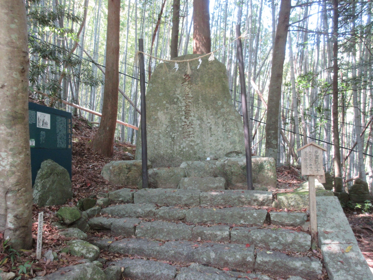 浜の王子社跡ということは熊野三所大神社の鳥居の横の碑にいろいろと説明しているのですが、境内のどこにあったのかわかりませんでした。後でインターネットで調べると、神社と渚の森駐車場の間の児童公園で「若宮跡、浜ノ宮王子社跡」と記した四角柱があるみたいです。補陀洛寺と熊野三所大神社は「渚の森公園」として整備され「渚の森駐車場」に案内板があるのですが、補陀洛寺の駐車場に車を停めたのでわかりませんでした。振分石(ふりわけいし)と呼ばれる石柱は「渚の森駐車場」のすみっこに案内板の横にあります。ここを訪れる時は先ずは「渚の森駐車場」からはじめるのが良いと思います。