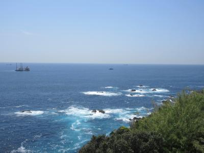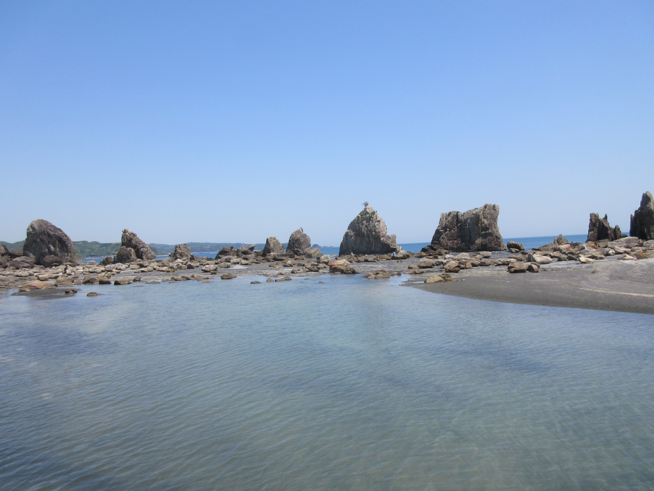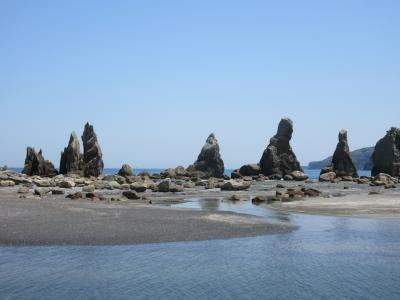 橋杭岩・串本から大島に向かい、約850mの列を成して大小40余りの岩柱がそそり立っています。実際に肉眼で見る自然美と迫力のある橋杭岩でした。画像では伝えにくいです。