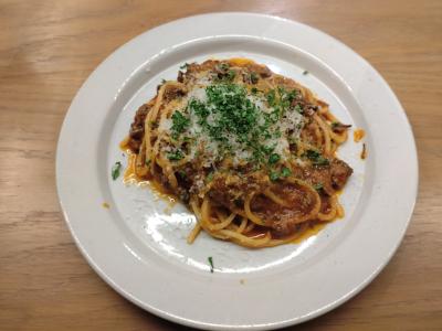カウンターの一番奥に座ると、キッチンが見渡せるので、料理が運ばれるまで退屈しませんでした。ランチセットはCコース【平日限定コース】奈良の富有柿のサラダと十勝牛のボロネーゼ(パスタ)を美味しく頂きました。- 旅行時期