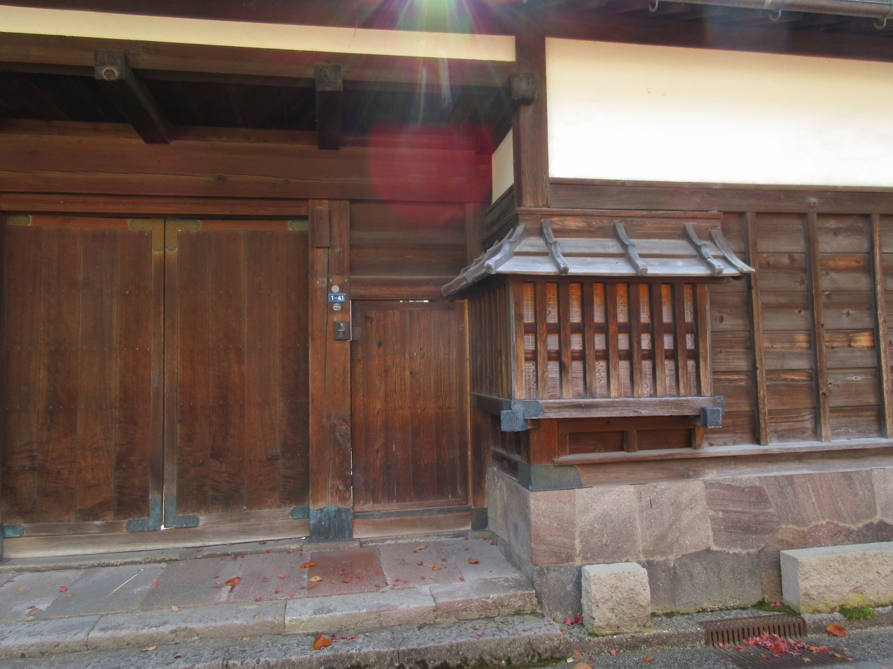 入口は厚い板石が敷かれた引き込み空間で、脇には大きな武者窓が張り出しています。- 旅行時期