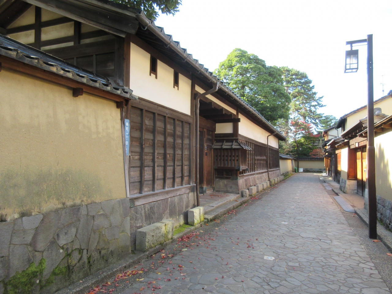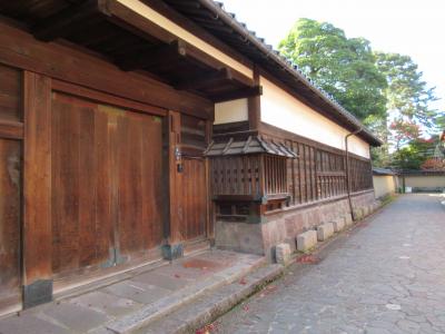 金沢の観光にグーグルマップを見て調べていたら「武家屋敷絵葉書スポット」と表記されているので、調べてみると北海道テレビのバラエティー番組「水曜どうでしょう」の『日本全国絵ハガキの旅』【透明なボックスにランダムにいれた絵ハガキを一枚引いて、その場所に行って同じ風景を撮影する】を繰り返す過酷な旅に登場した場所でした。番組のファンは一生懸命に撮影するので、不思議に思われるそうです。もちろんファンなのでたくさん撮影しました。