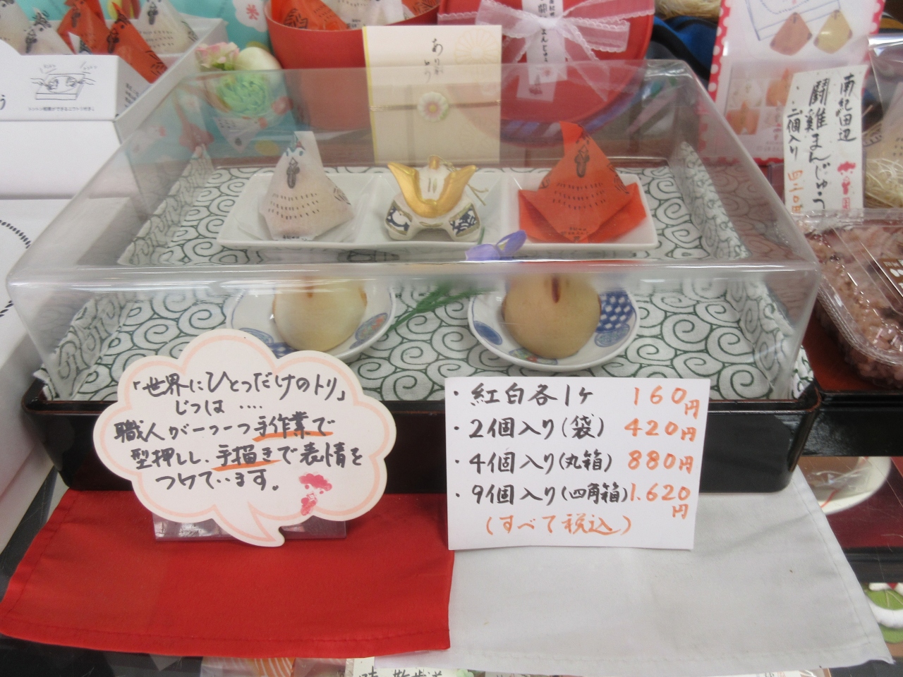 闘鶏神社に行った時、お土産に鬪雞まんじゅうを買いました。可愛いニワトリのパッケージです。白は柚餡、赤は梅餡のニワトリの形をしたまんじゅうです。白を一個と赤を一個セットにした可愛いラッピングとギフト用箱9個入りとあり、セットを3個と注文しましたが、ばらだともっと安いと店員さんのアドバイスで赤3個白3個にして、お得な買い物ができました。無地の箱に入れてもらえたので型崩れなく持って帰れました。