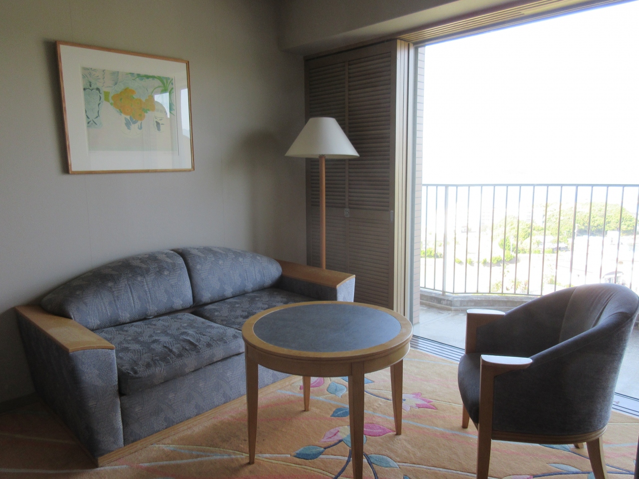 駐車場に着いた時ホテルマンが車まで出迎えて来て、スーツケースをフロントまで運びながら接客してもらえたのが嬉しかったです。部屋は広くてオーシャンビューでした。ソファーのクッションが穴だらけで、カーペットにも焦げ目が付いて残念です。
