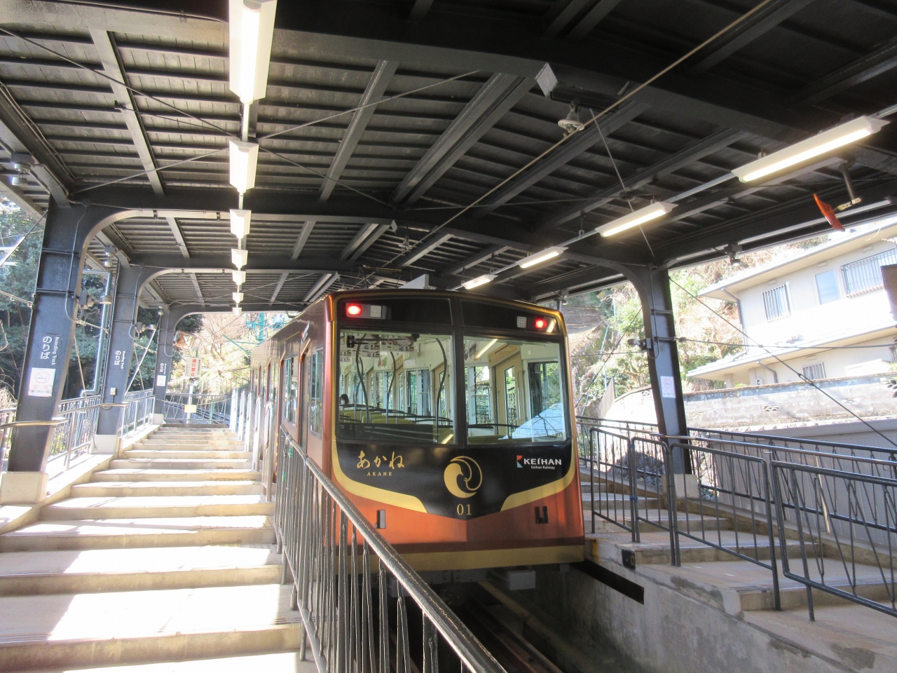 乗った車両の名前は「あかね」で、対の車両は「こがね」で、神の遣いとされる石清水八幡宮の「阿吽の鳩」になぞらえての命名とのことです。