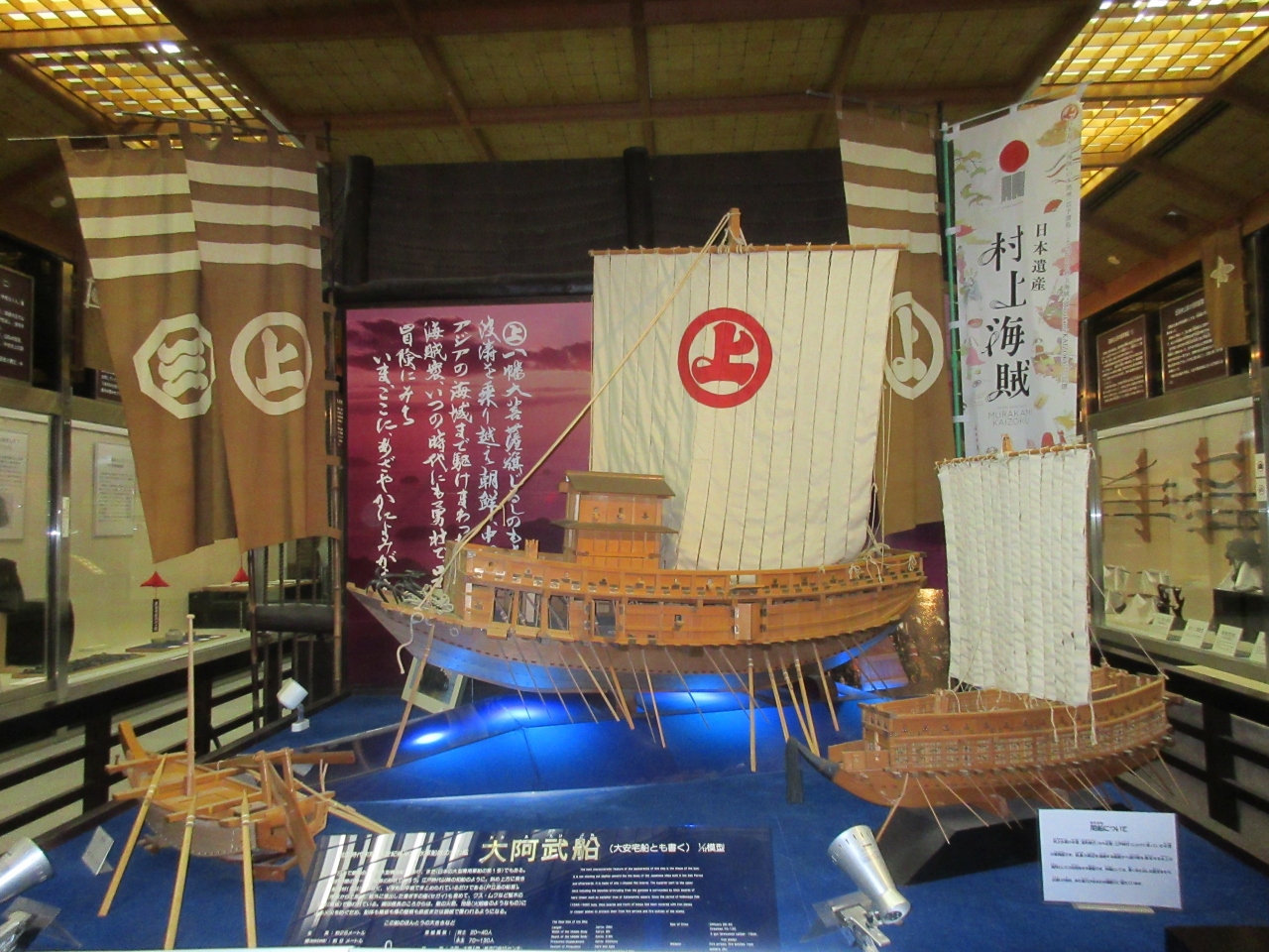 室町・南北朝時代から戦国時代にかけて芸予諸島を中心に活躍した村上水軍(海賊)の武具や古文書などの歴史資料を展示した、全国的にもめずらしい城型資料館です。