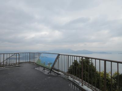 向島(広島県尾道市)の最高峰・高見山(たかみやま)の最高峰から広がる絶景を見に行きました。展望台までの道のりが悪いです。観光客は続々と訪れて来てました。展望台デッキからの眺めが良いです。瀬戸内海の島々が一望できます。曇り空なのが残念でした。
