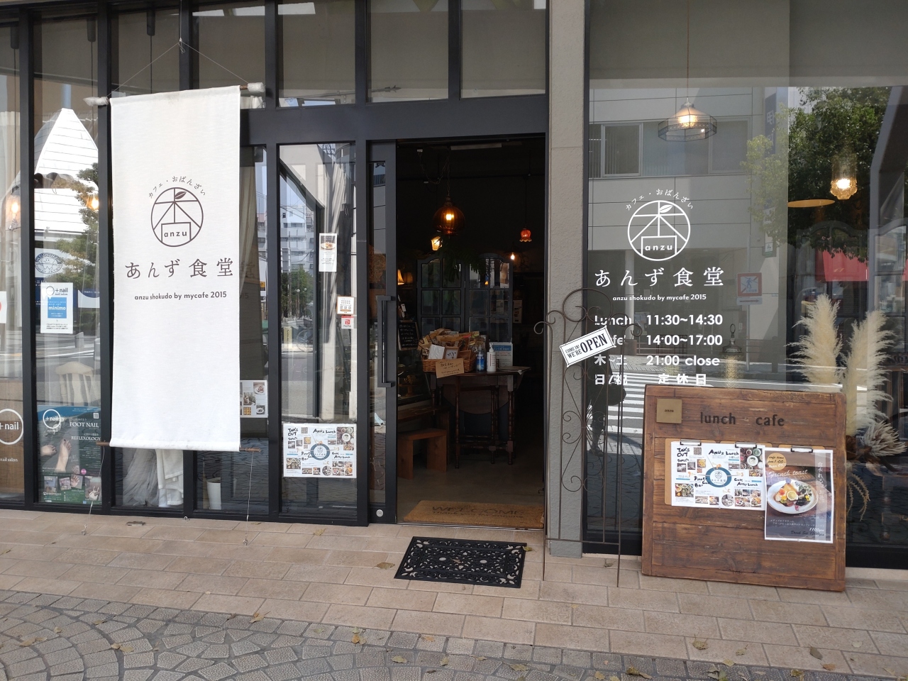 入口ドアが解放されて、店内の様子が見えて、雰囲気よさげでしたので、入店しました。メニューがバインダーに挟まれていたので、一番上の「anzuランチ」をオーダーしたのですが、オーダーした後にわかったのですが、下にサービスランチのメニューの紙があったのです。どちらもパッと見れるようにバインダーを大きくするかブック型にするか、バインダーごと渡すかにして欲しかった。料理事態は美味しかったのですが、落ち着いて吟味して注文できたらよかったらのにとあとからモヤモヤしました。入り口のショーケースのスィーツはテイクアウトできるそうです。