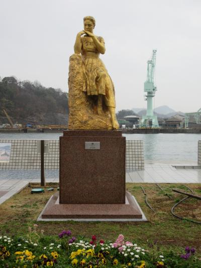 尾道水道沿いの海岸通りの遊歩道の壁面、約150mに渡り絵画コンクール「絵のまち尾道四季展」のグランプリ作品(レプリカ)などを展示し一般に無料公開しています。24時間年中無休の海辺の美術館です。尾道の街並みや生活風景などが描かれています。黄金の女性の像の後ろに造船所のクレーンが見えるのは、ここだけではないでしょうか。- 旅行時期