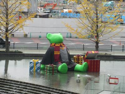 うめきた広場の水景には水景のクマ「テッド・イベール(TED HYBER)」がイベントの時は期間限定で、可愛い衣装を着てます。- 旅行時期