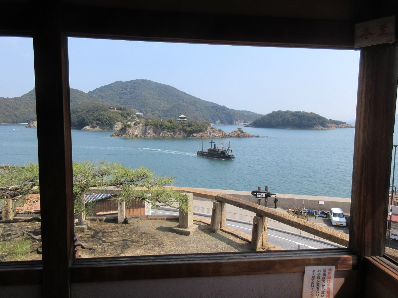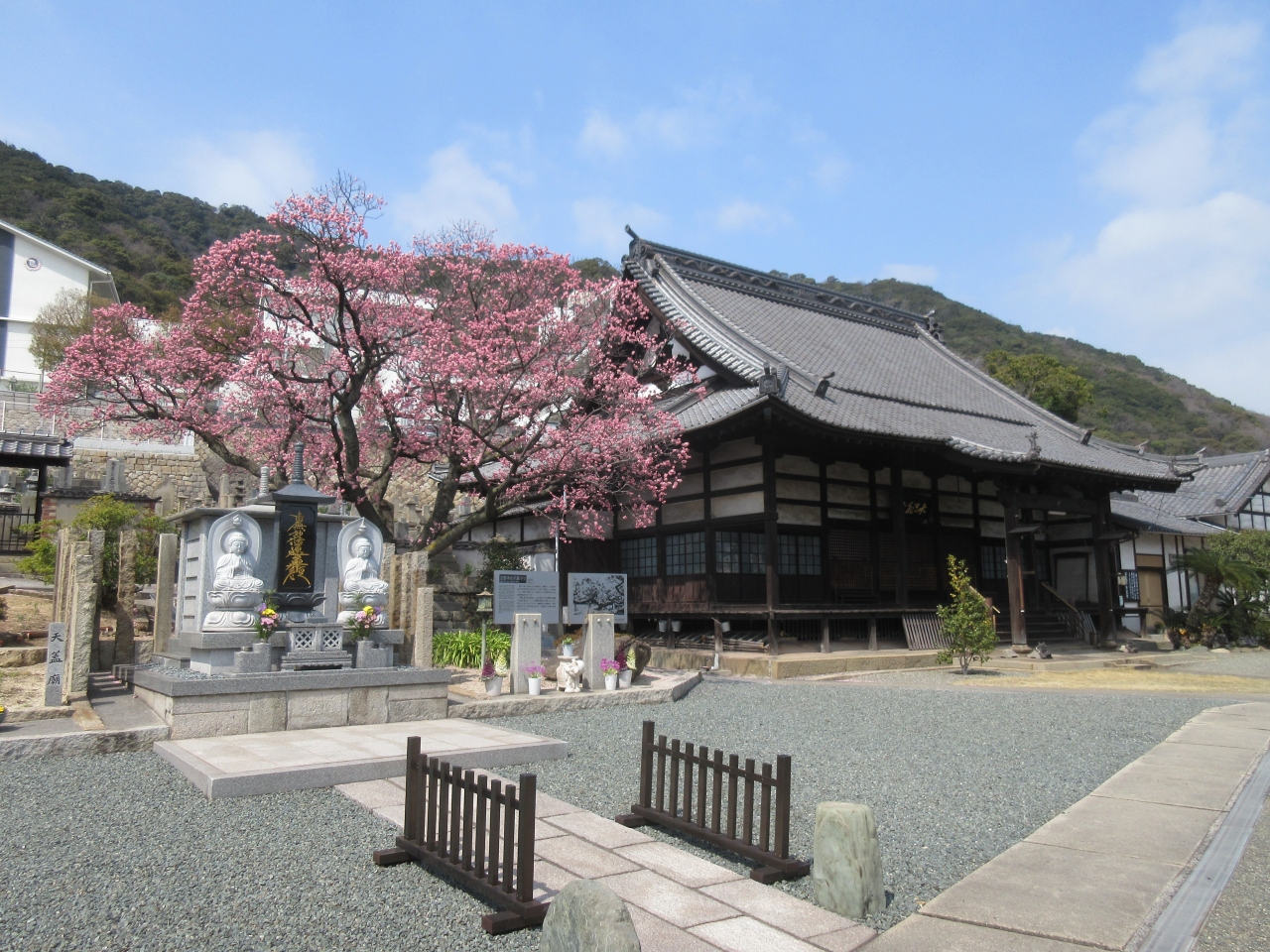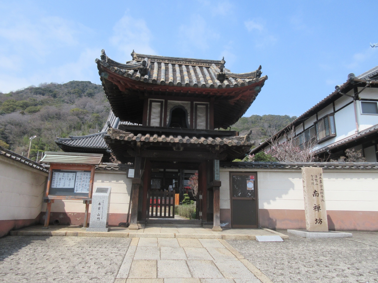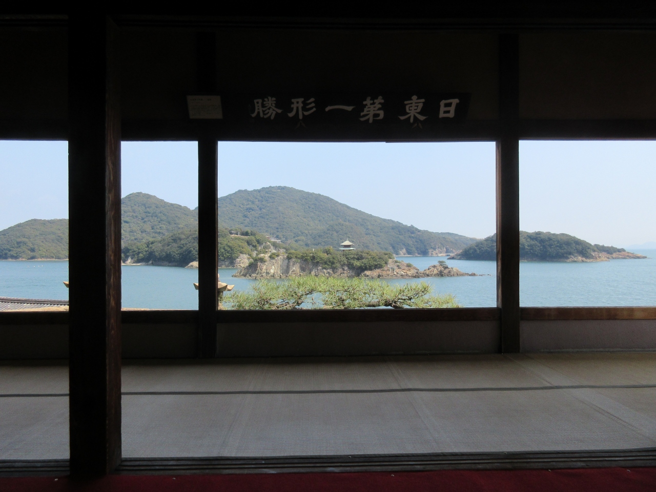 江戸時代の元禄年間(1690年頃)に創建された客殿で国の史跡に指定されています。平安時代の天歴年間(947~957年)に、空也上人によって、「観音堂」(天台宗)として建立されたと伝えられています。座敷からの海の眺めは素晴らしく、1711年、朝鮮通信使の李邦彦は「日東第一形勝」と賞賛。1748年、洪景海は「対潮楼」の書を残しています。この絶景を見るために訪れるたと言っても過言ではない。