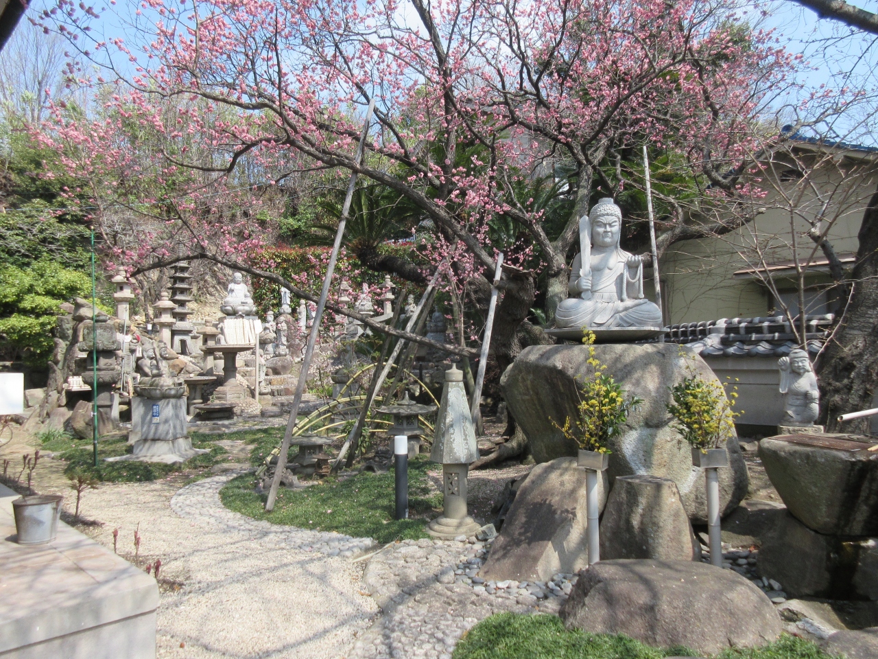 境内の「仏庭十三仏・やすらぎ苑」個性溢れる石仏がお祀りされていて、なんとも不思議な雰囲気を感じる事がです。紅梅が咲き誇っていてとても綺麗でした。- 旅行時期