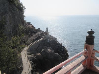 金剛福寺(石塔)から断崖絶壁の上に建つ観音堂を見る事ができます。- 旅行時期