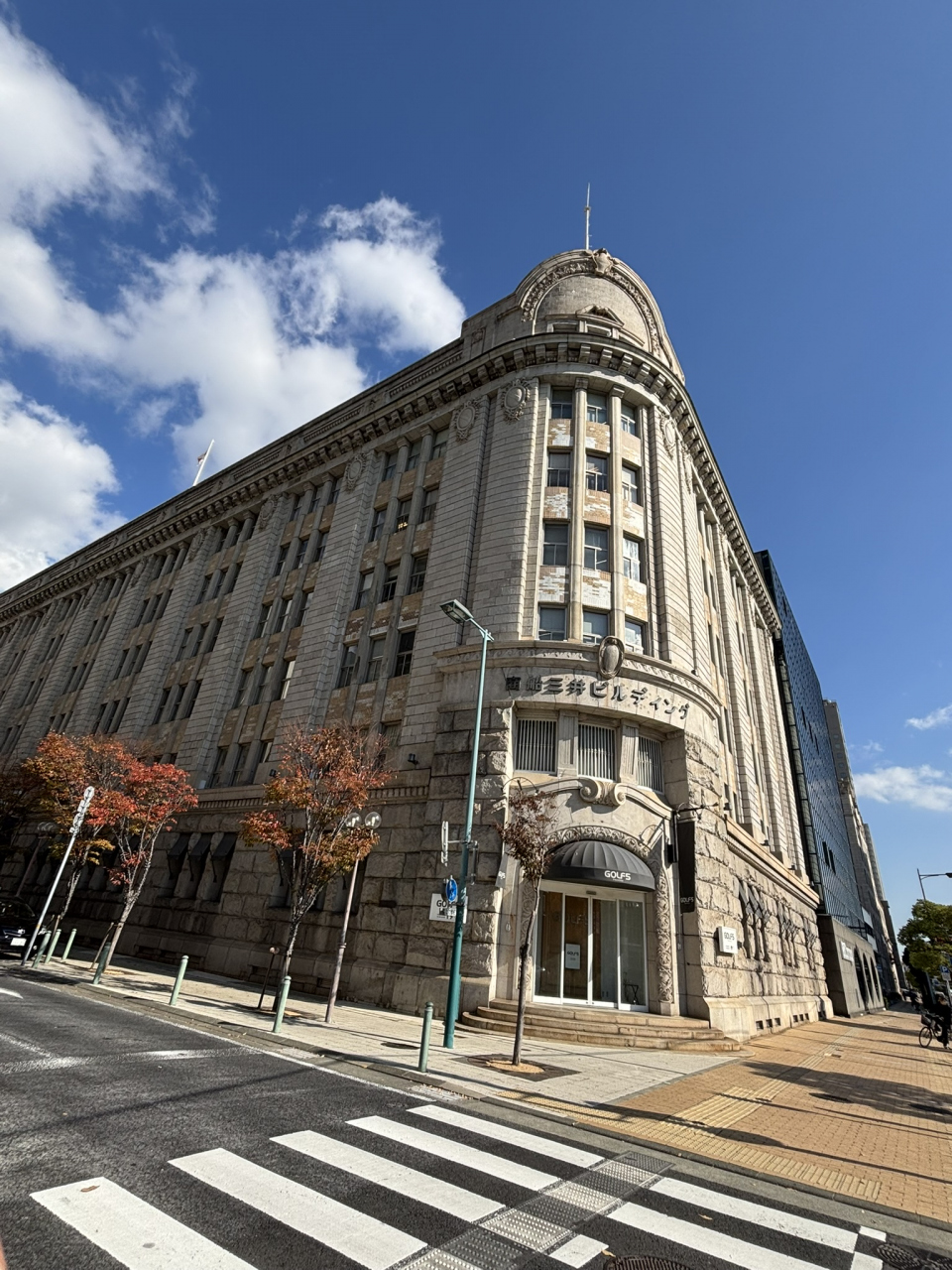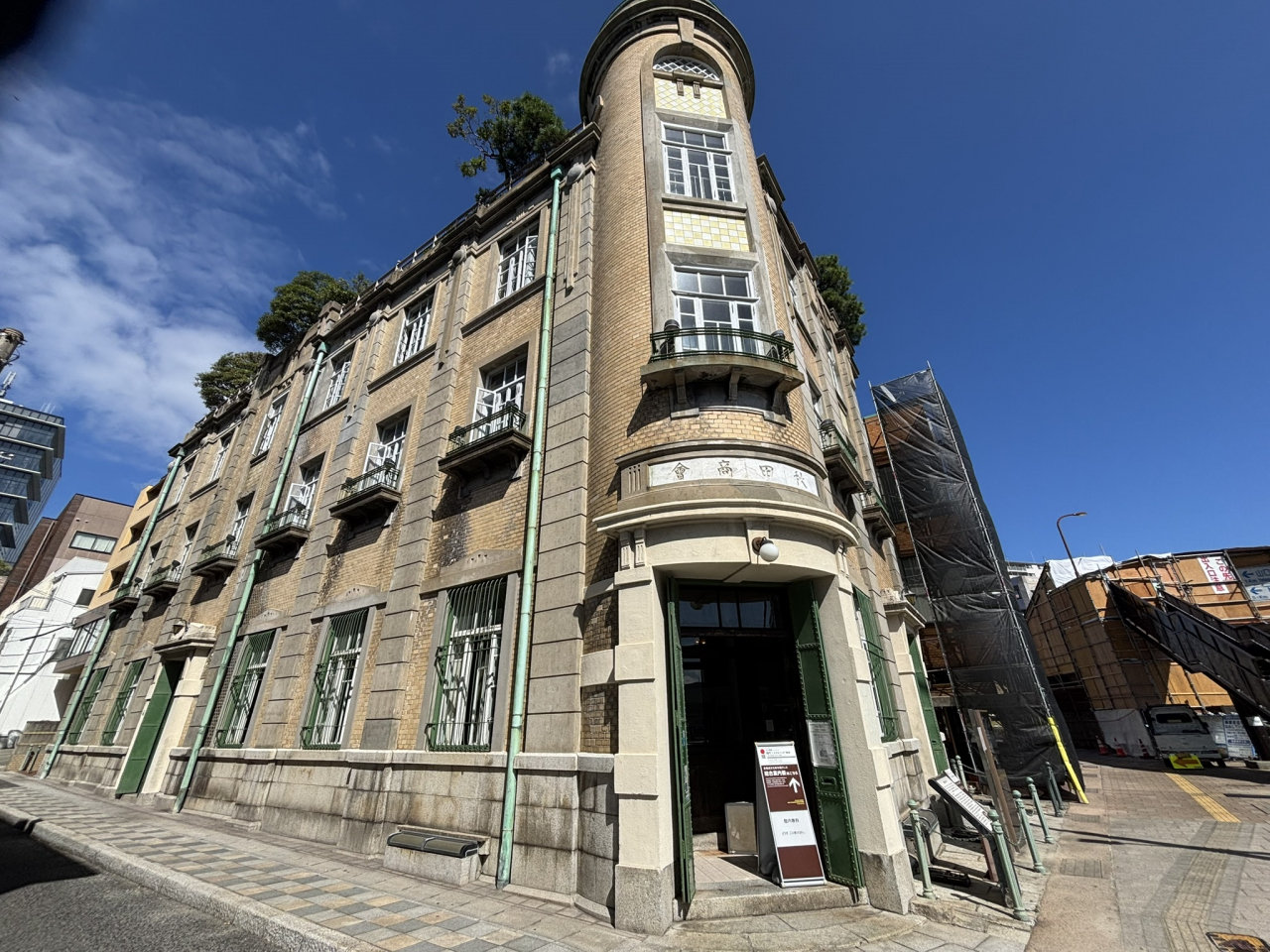 建物の特徴は塔屋と屋上庭園で、外からも塔が目だっていますが、近くの海で自社の船の寄港を早く確認する役目もあったそうです。