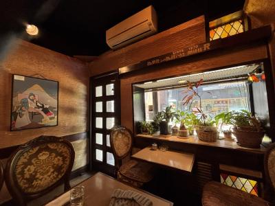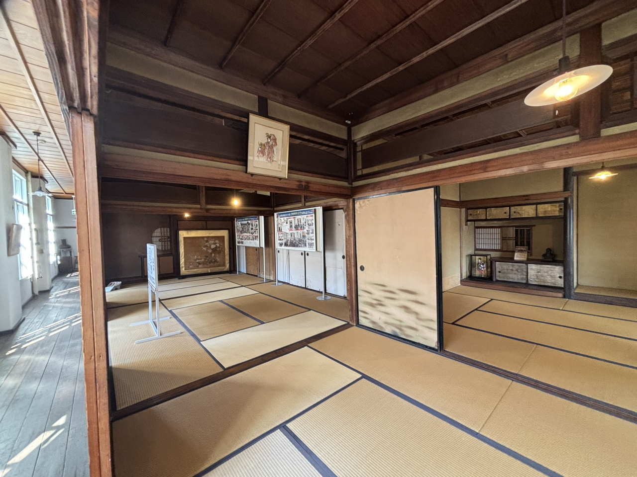 外から見ると洋風ですが、二階以上は和風の建物で、屋上には庭園があります。
