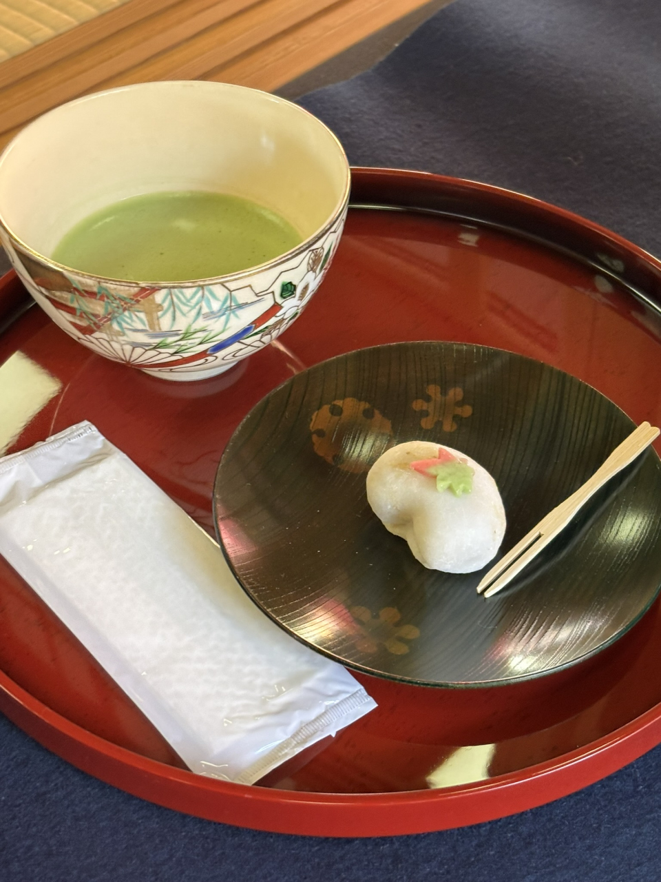 お抹茶も美味しく、和菓子もとても上品なお味で、お庭を観ながら贅沢な時間を過ごしました。