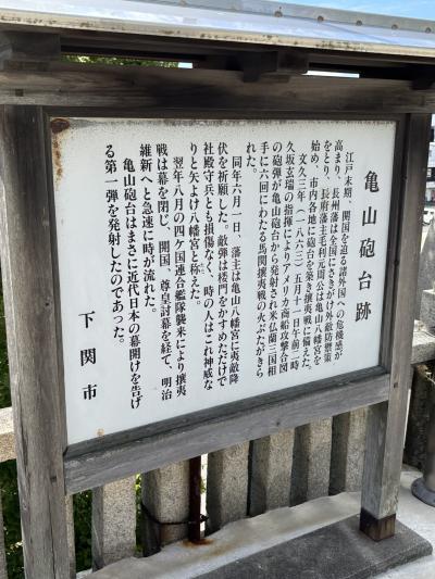 ここには亀山砲台があり、幕末に久坂玄瑞の指揮で、1863年にアメリカ商船攻撃合図の砲弾がこの亀山砲台から発射され、馬関戦争が始まりました。
