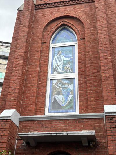 素朴な雰囲気の教会でしたが、ステンドグラスやアーチの窓も素敵でした。