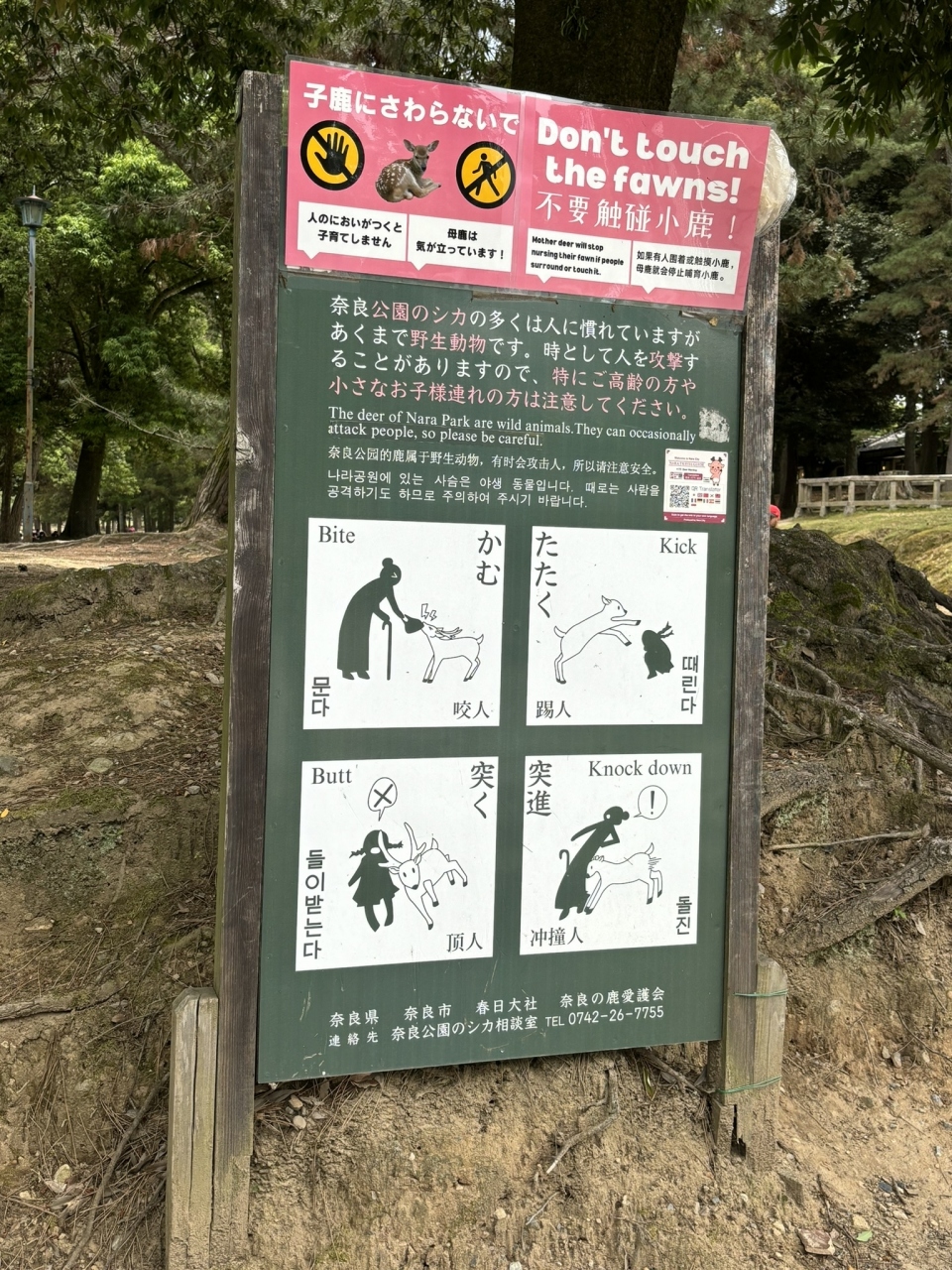 看板に多言語で、鹿への禁止事項などを注意喚起していますが、それだけでは不十分だと感じます。