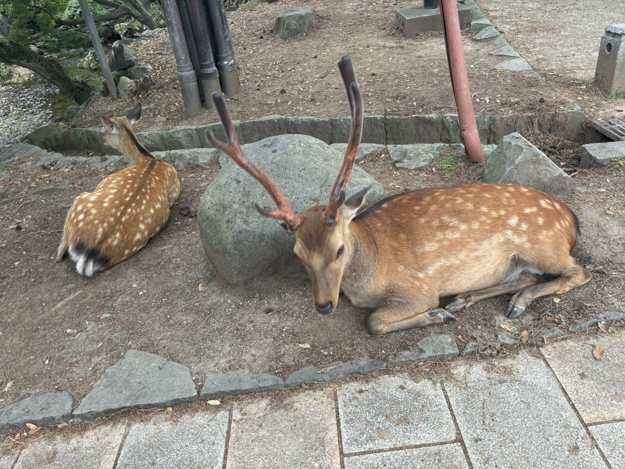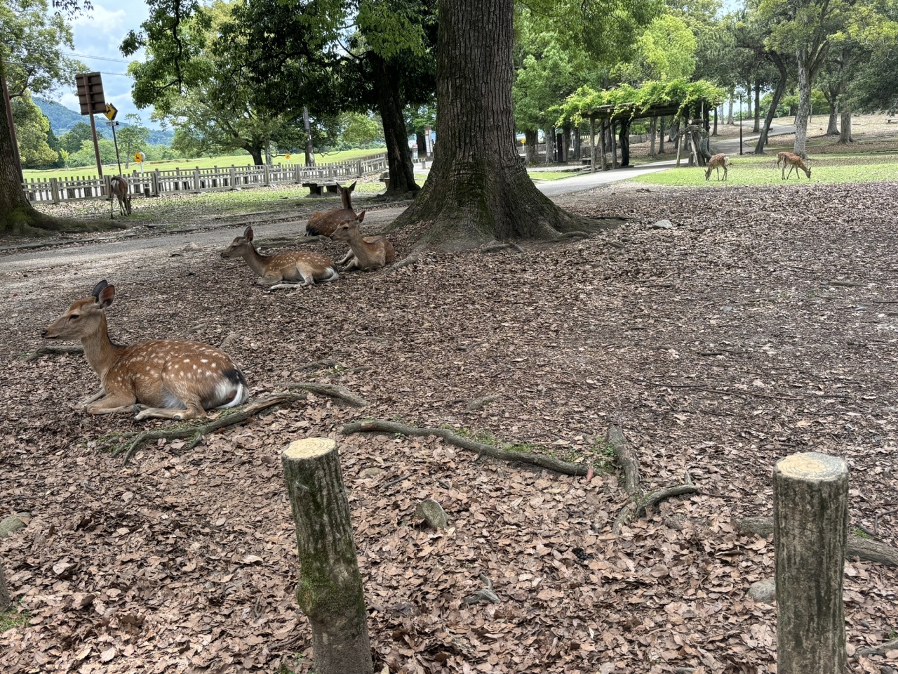 あちこちで鹿を見かけますが、観光客が写真を撮るために鹿を鹿せんべいで呼び寄せ、その後長い時間、鹿せんべいを与えず、鹿に頭を下げ続けさせ、鹿が怒っている場面を何度も見かけました。