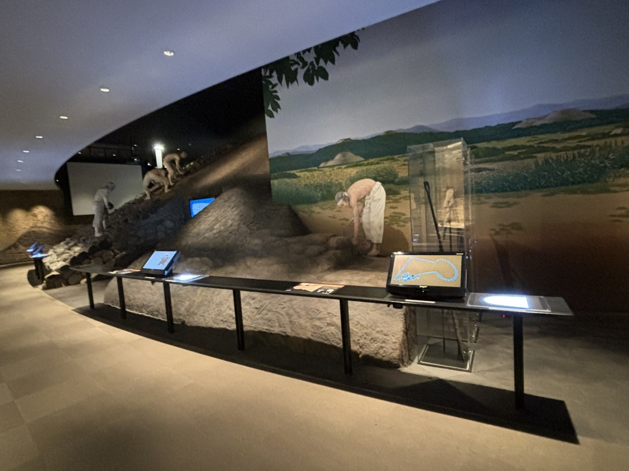 近くに今城塚古代歴史館があり、そちらには古墳の成り立ちや古墳の築造について、また出土品なども展示されています。