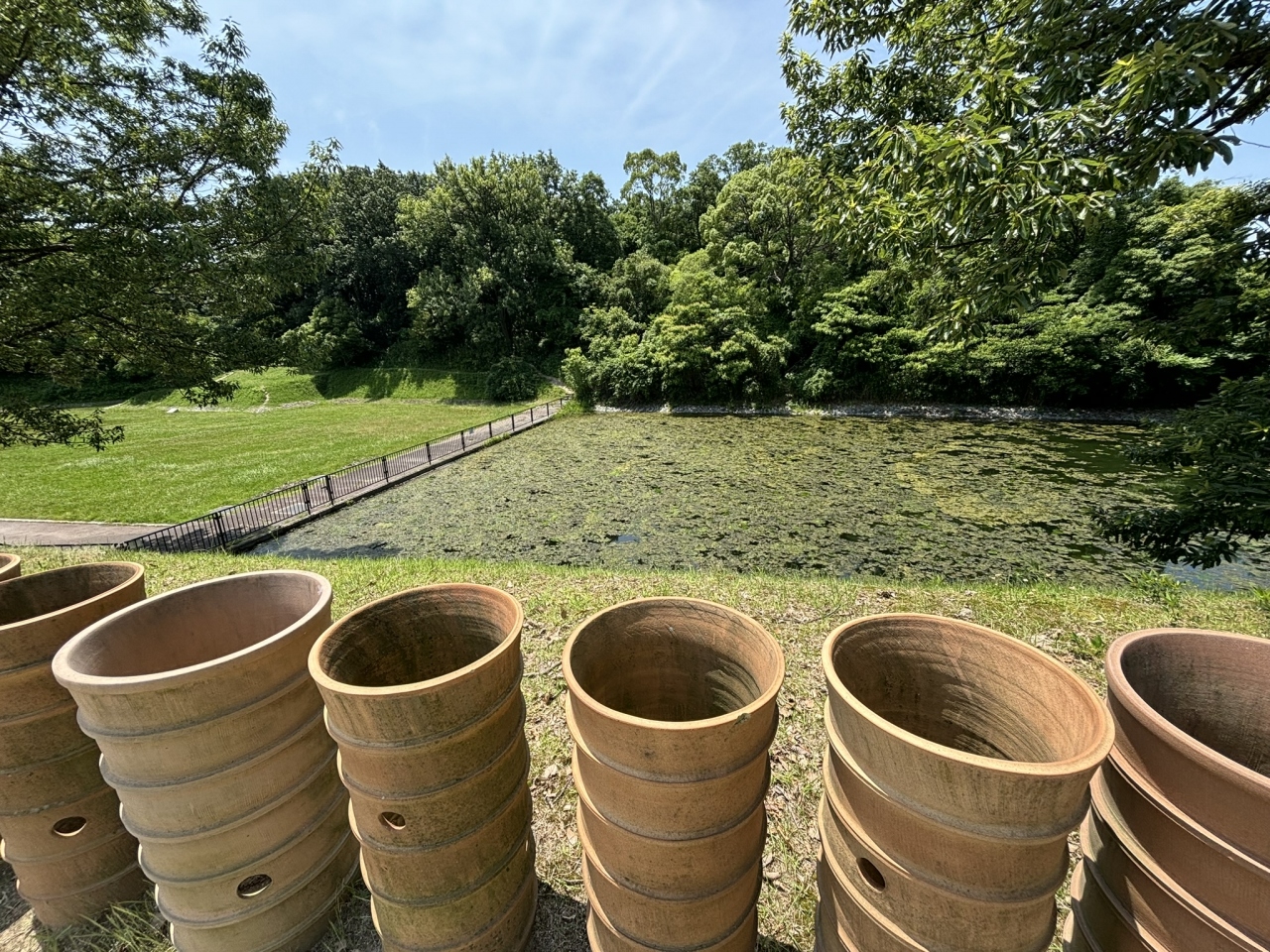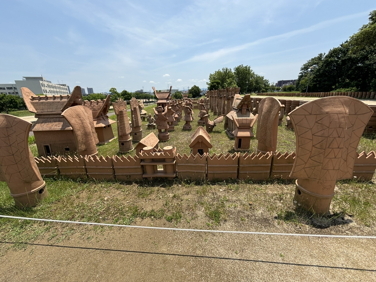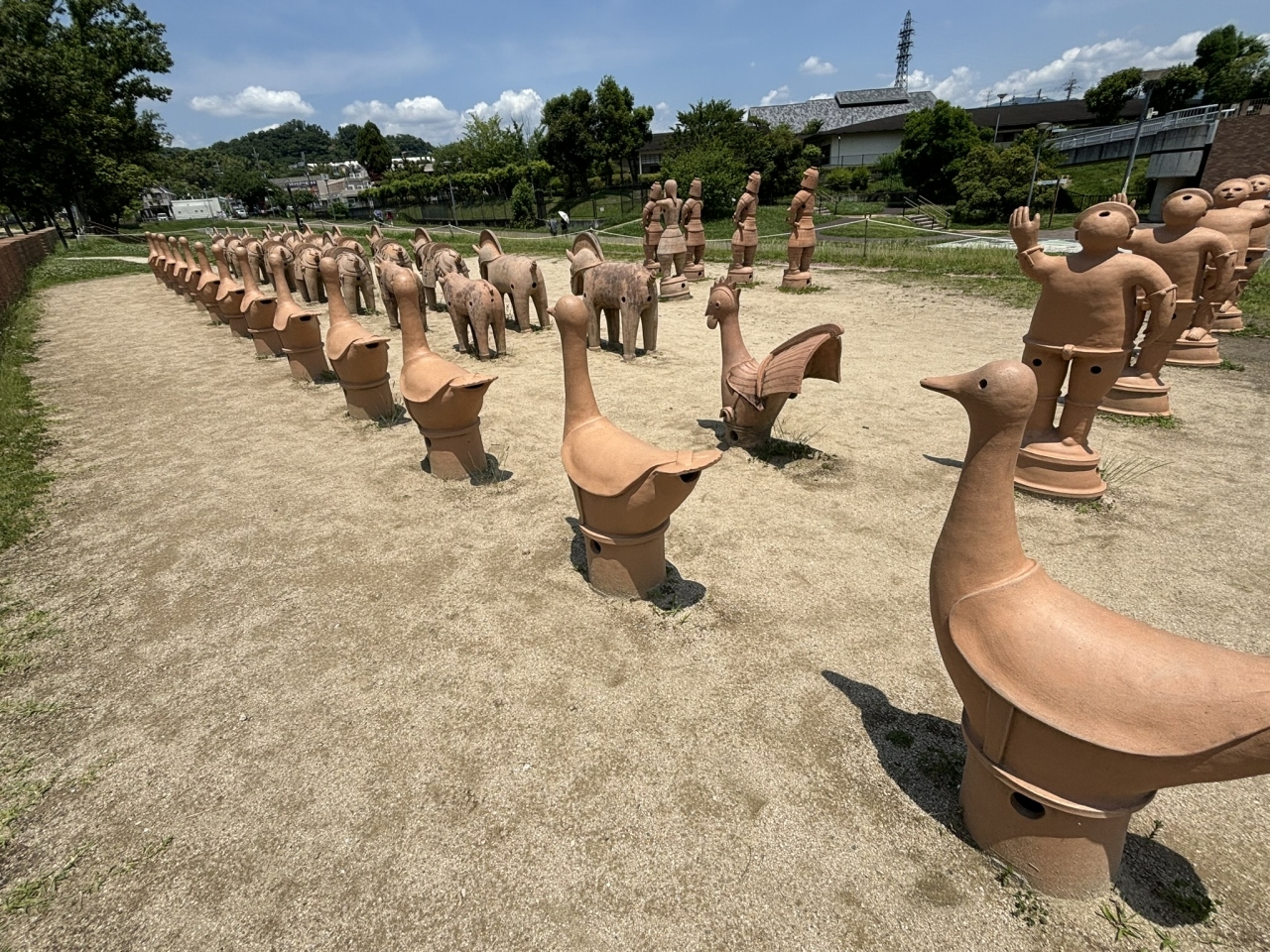 継体天皇の陵墓 今城塚古墳の場所から少し離れたところに、その古墳に備えられた埴輪を作っていた工場跡があります。広さも3万㎡で、遺跡公園になっています。埴輪を焼く窯は18基、工房も3棟、職人の住居もありました。