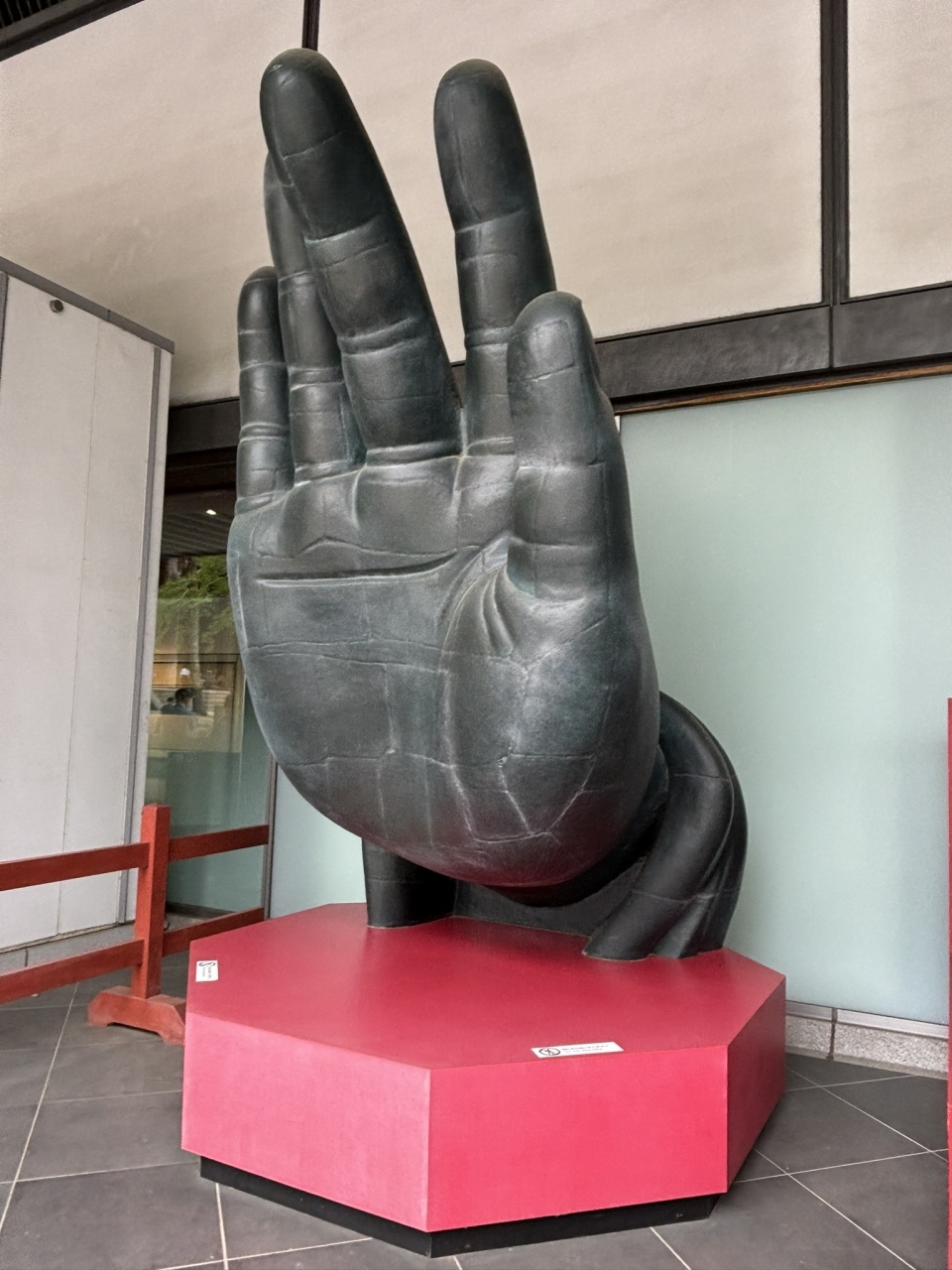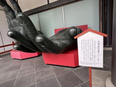ミュージアム外にはレプリカですが、大仏の手が実物大で展示されています。