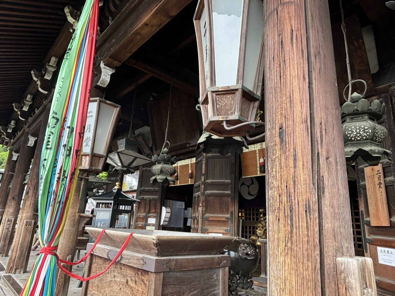 3月に行われるお水取り(修二会)がおこなわれます。旧暦では2に行われていたので二月堂の名前が付けられています。現在の建物は1669年の江戸時代再建のものです。国宝になっています。