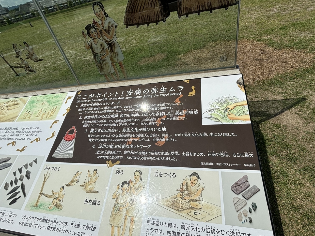 弥生時代の集落の様子がわかるように保存されており、環濠をめぐらした居住地域や生産の地域、墓域、この三点の範囲や時期がわかるようになっている史跡公園です。