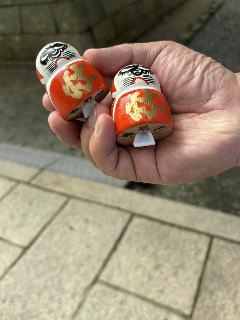 私達も小さな勝たるまを買って、境内に置きました。決まった期日にお焚き上げをしてくれるそうです。勝だるまの中にはおみくじが入っていました。