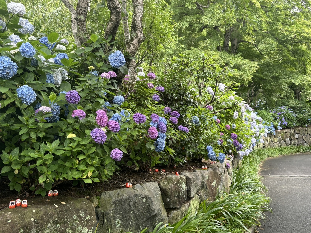 訪れたときは、紫陽花の季節で、色とりどり、種類も様々な紫陽花が美しかったです。- 旅行時期