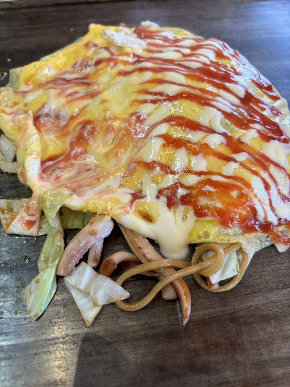 モダン焼きはスタッフが焼いてくれますが、手際よく、時間をみながら、時間を見計らいながら焼いてくれるので、熱々がとても美味しいです。