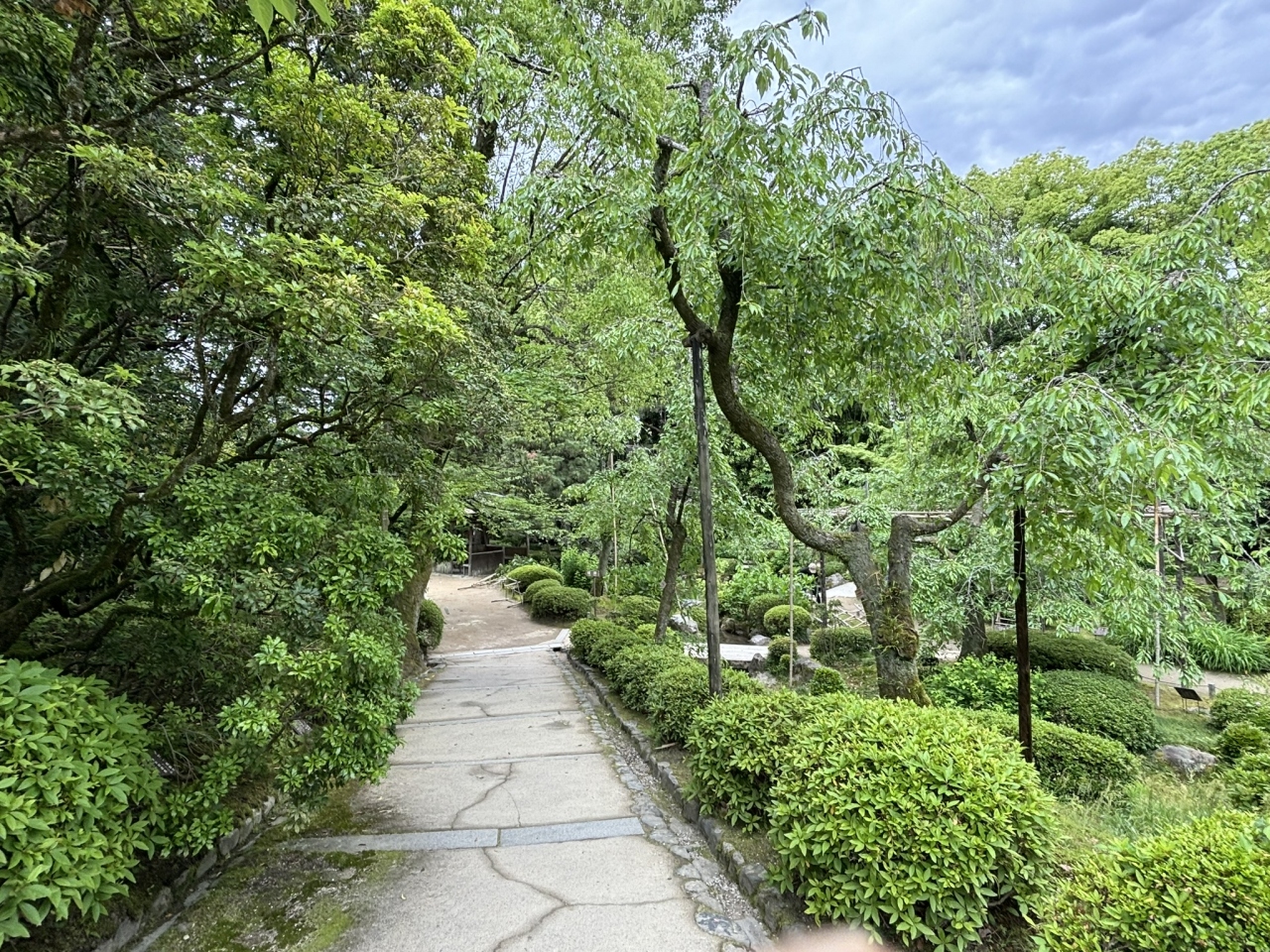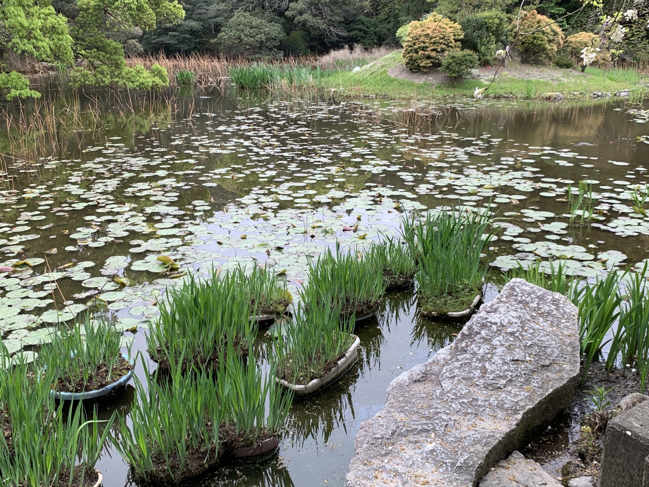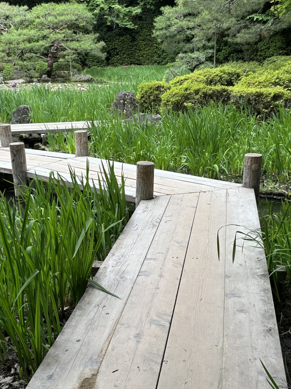 訪れたときは、菖蒲の花が咲いており、新緑の緑も美しかったです。
