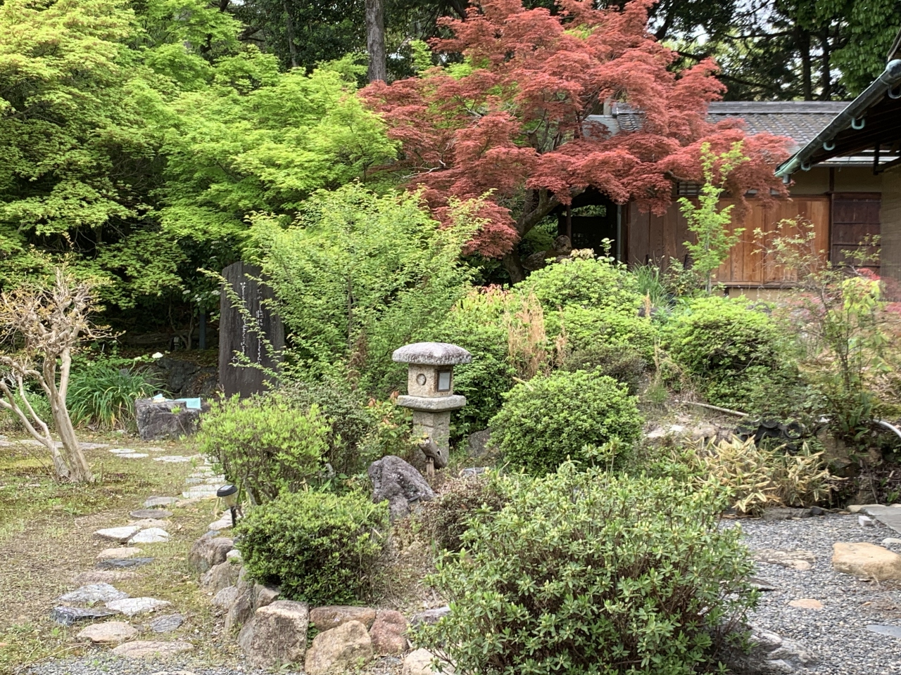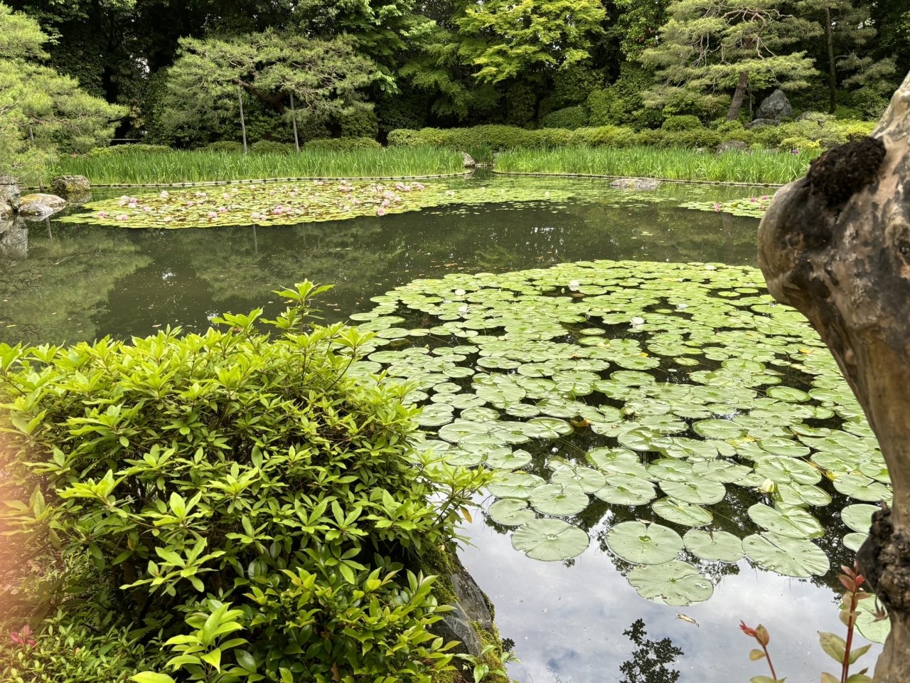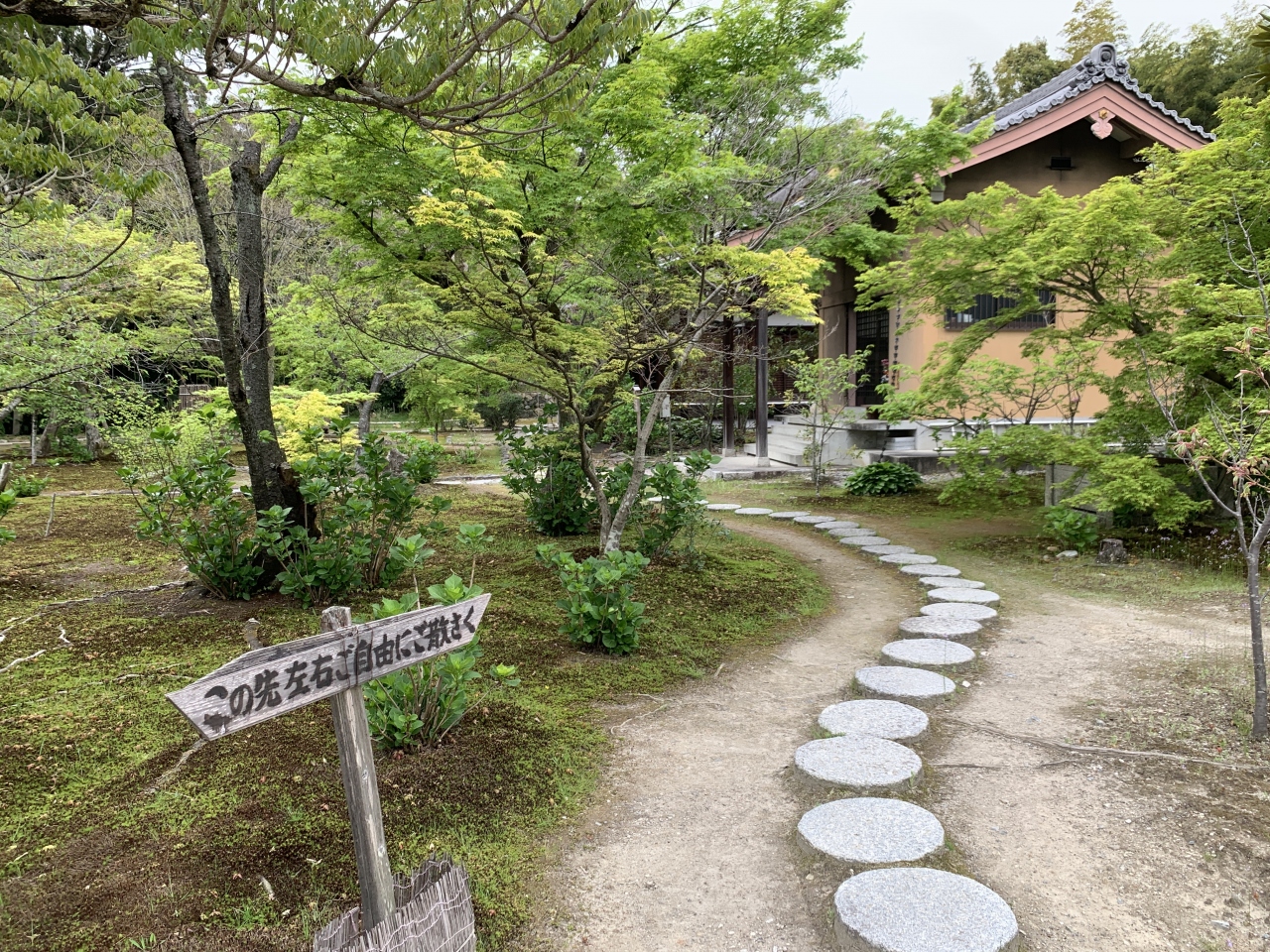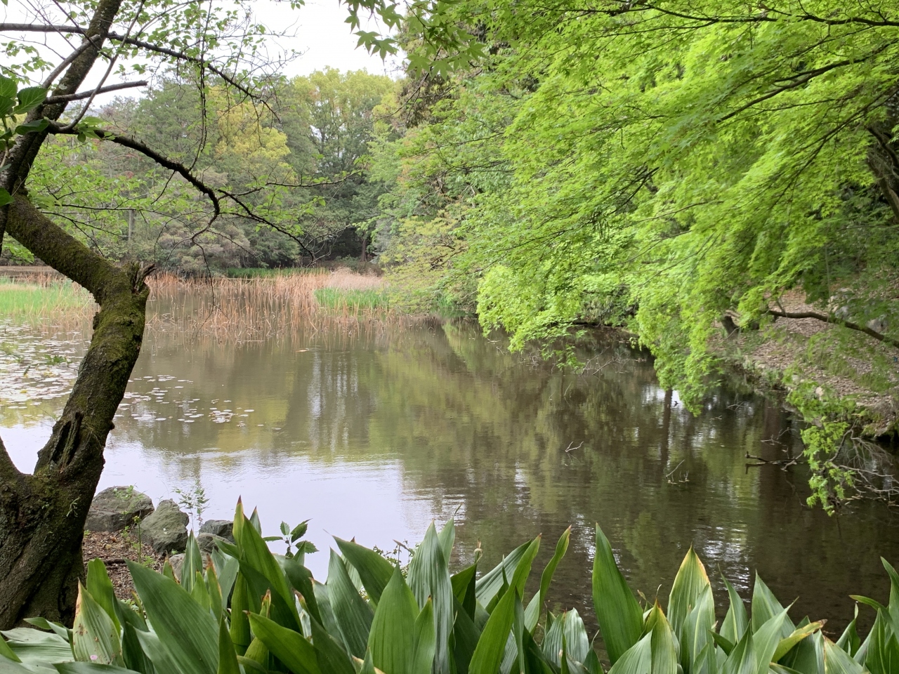 訪れたときは、菖蒲の花が咲いており、新緑の緑も美しかったです。