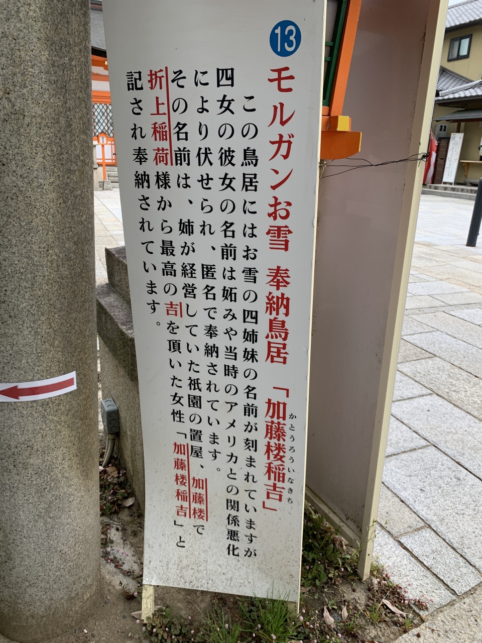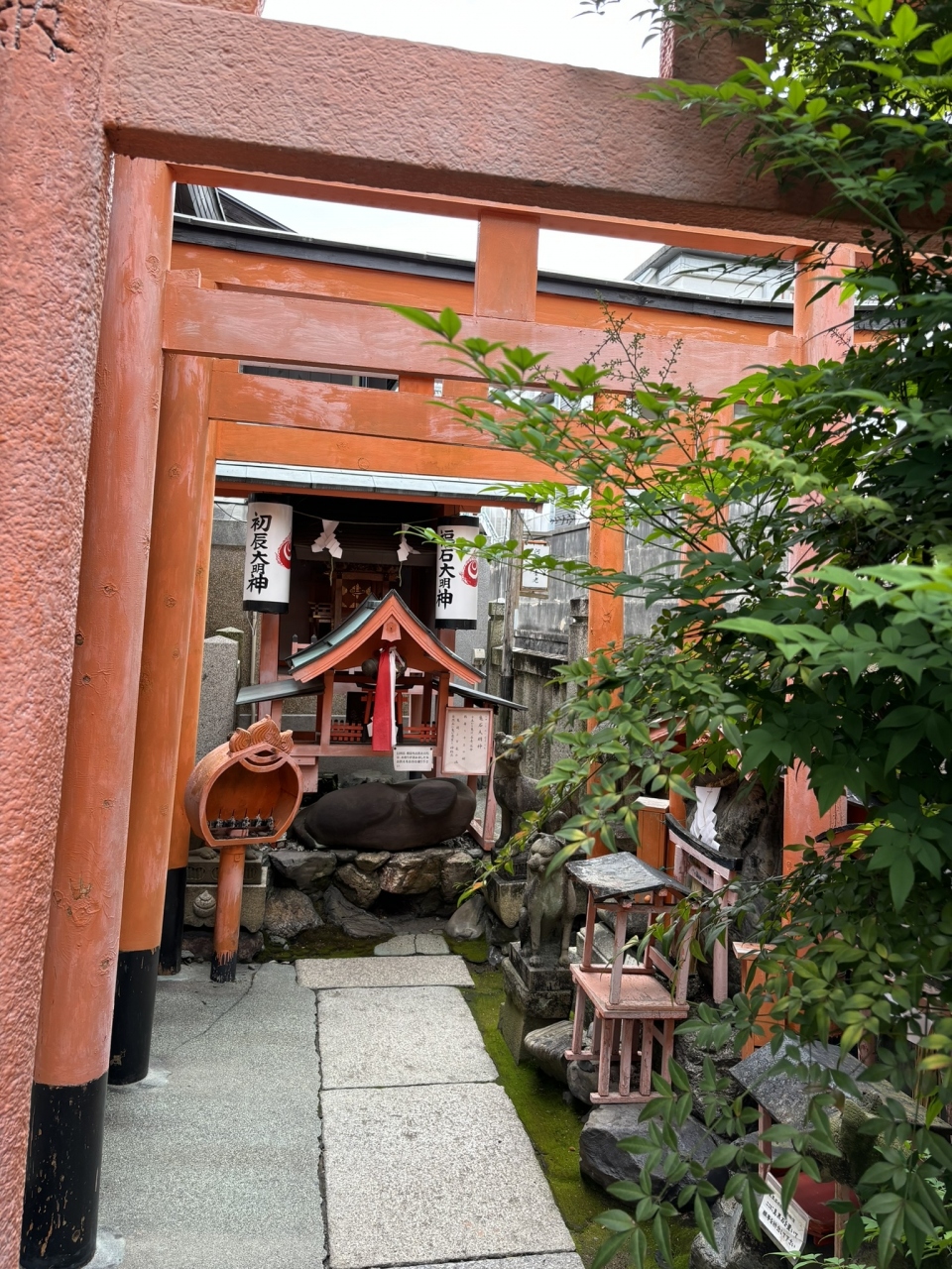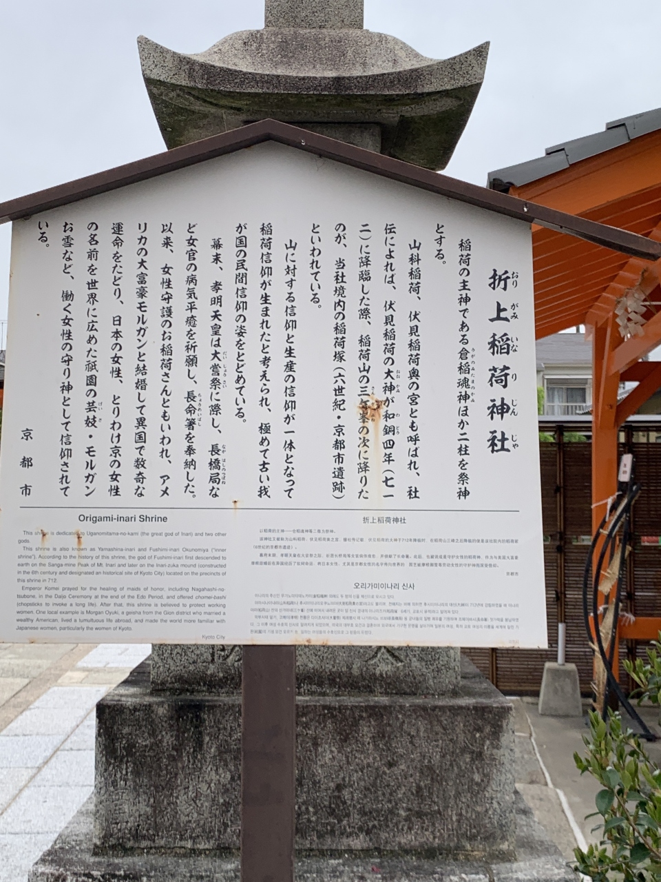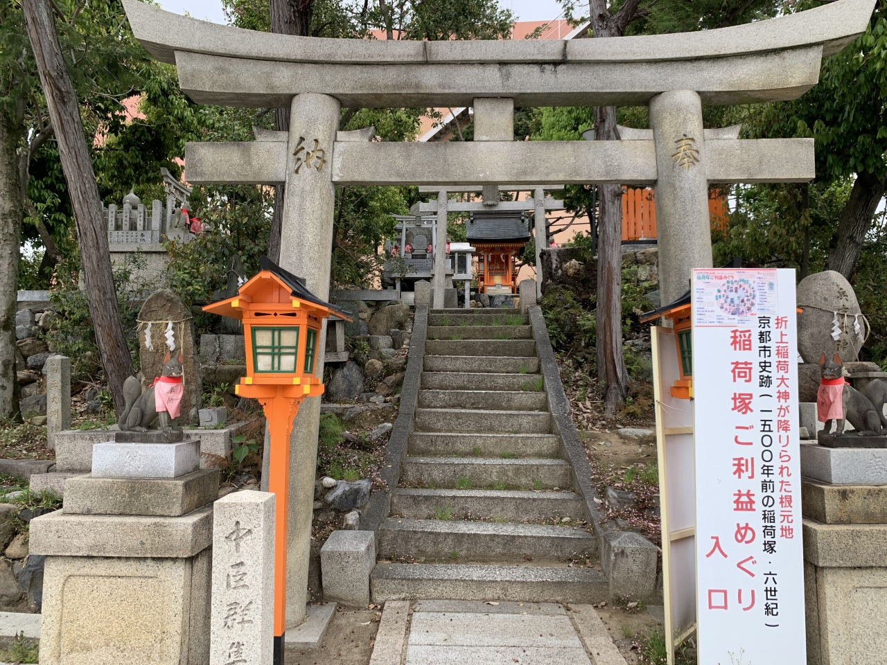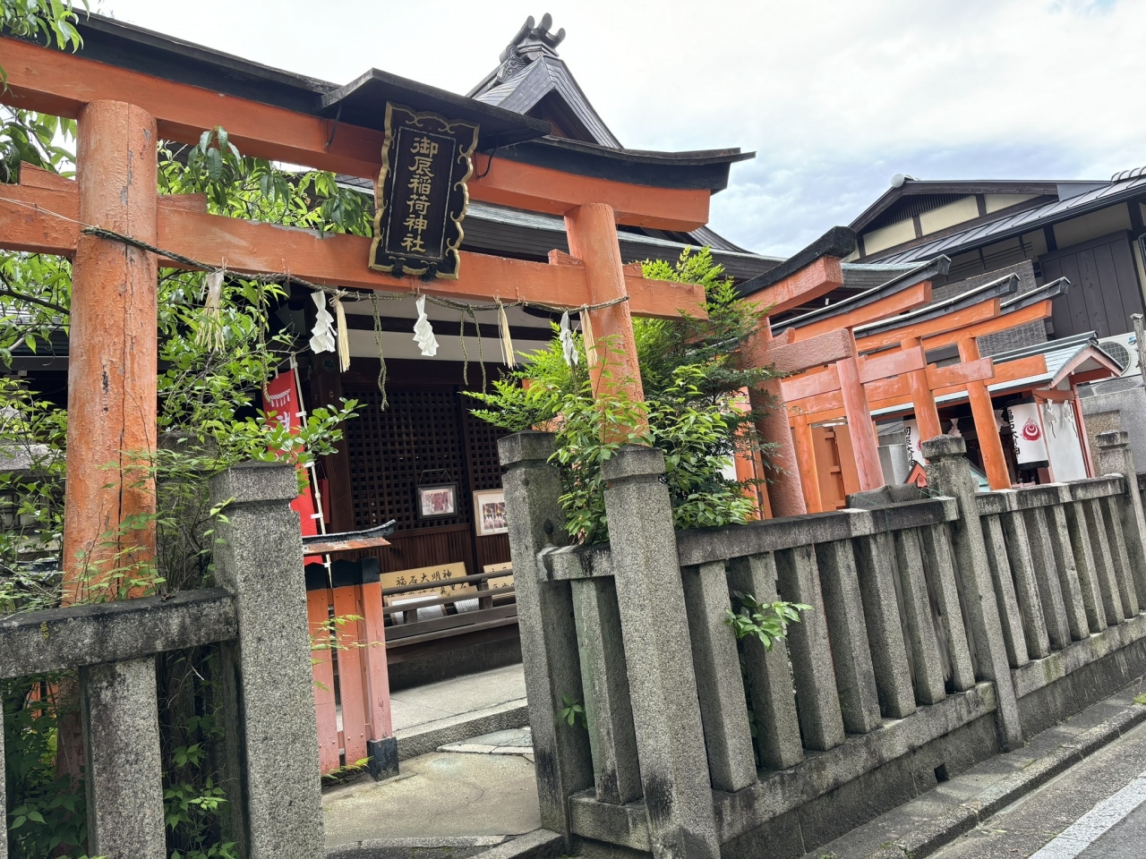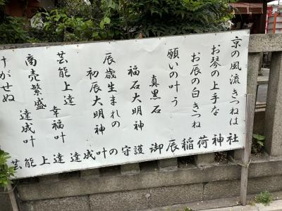 東山天皇の側室の新崇賢門院の夢枕に白い狐が現れて、そのお告げにより御所の辰の方角の森、聖護院の森に祠が建てられました。これが、「御辰稲荷神社」の始まりといわれています。