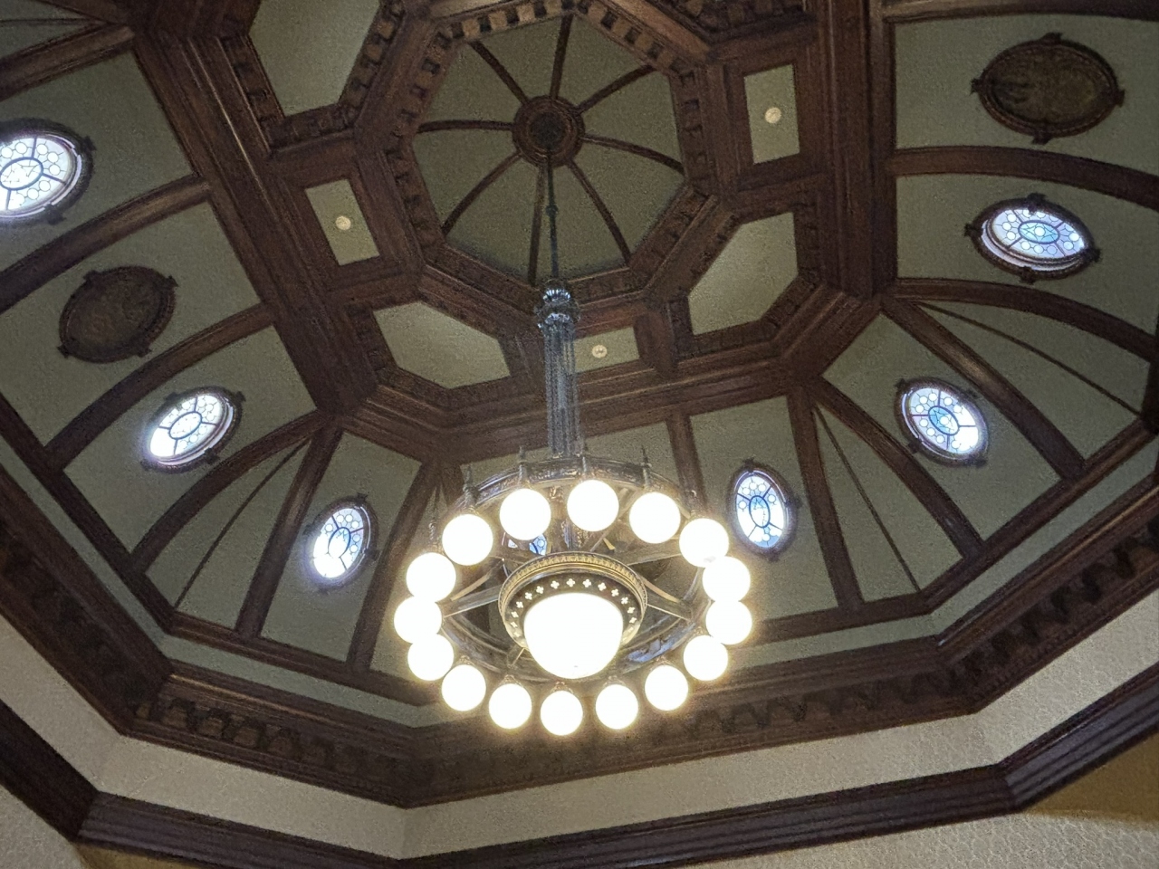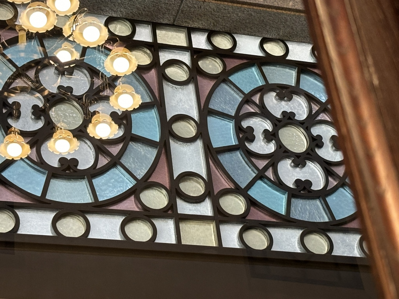 もと、貴賓室だったところで、ドームの天井とステンドグラスが豪華です。