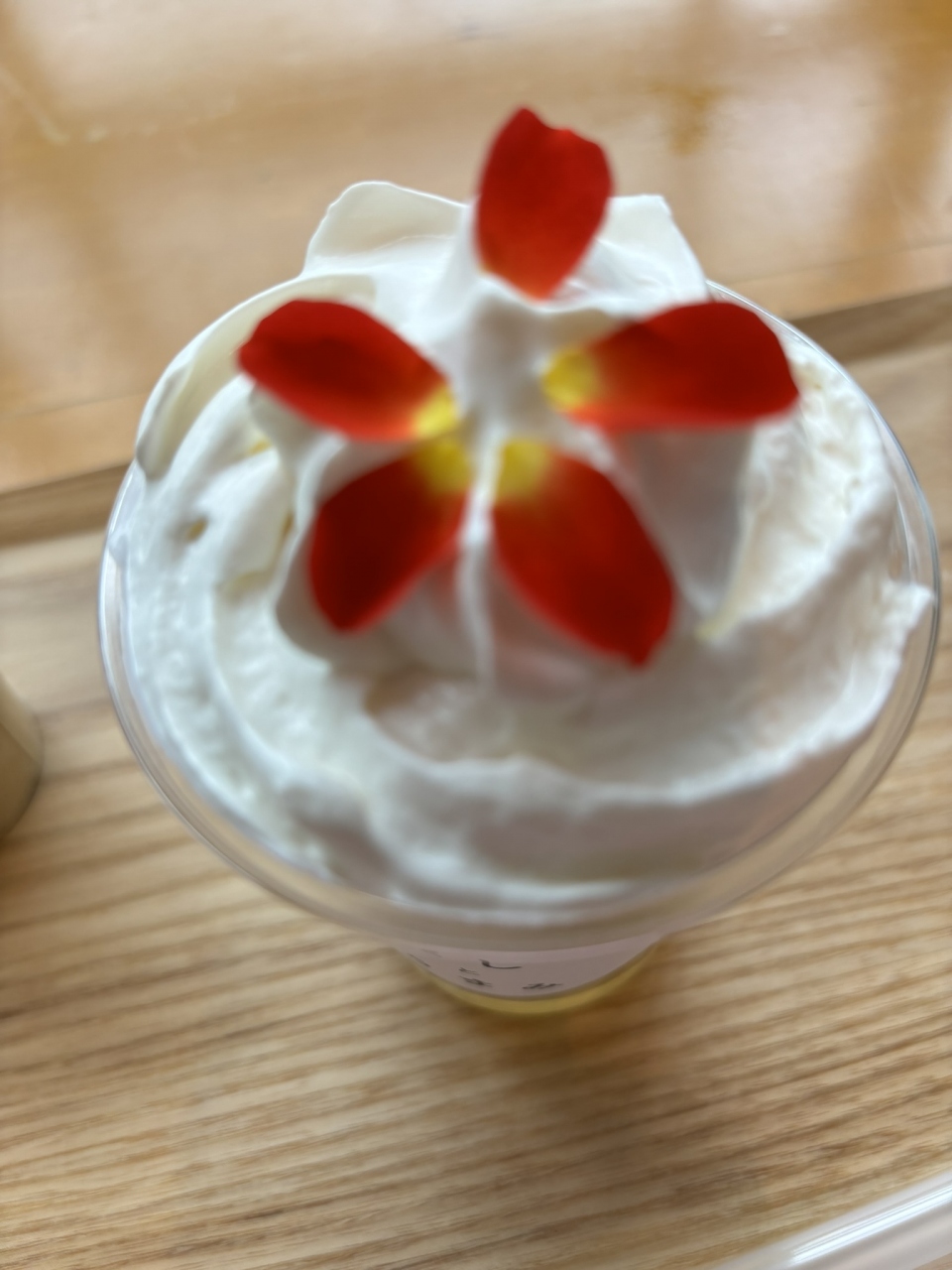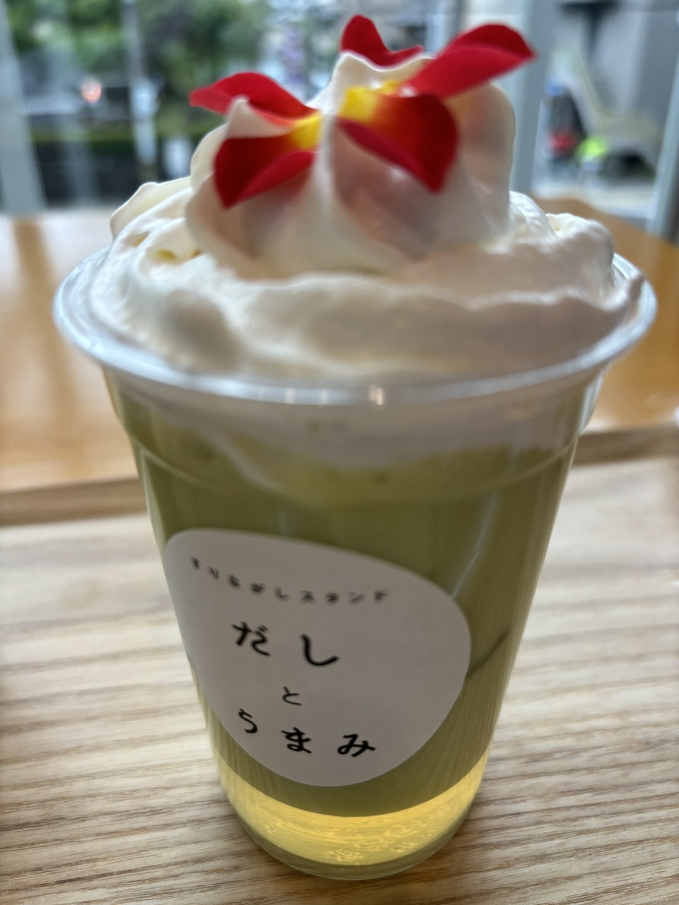 出汁のジュレが下のほうに入っていて、上にはクリームが乗っていました。