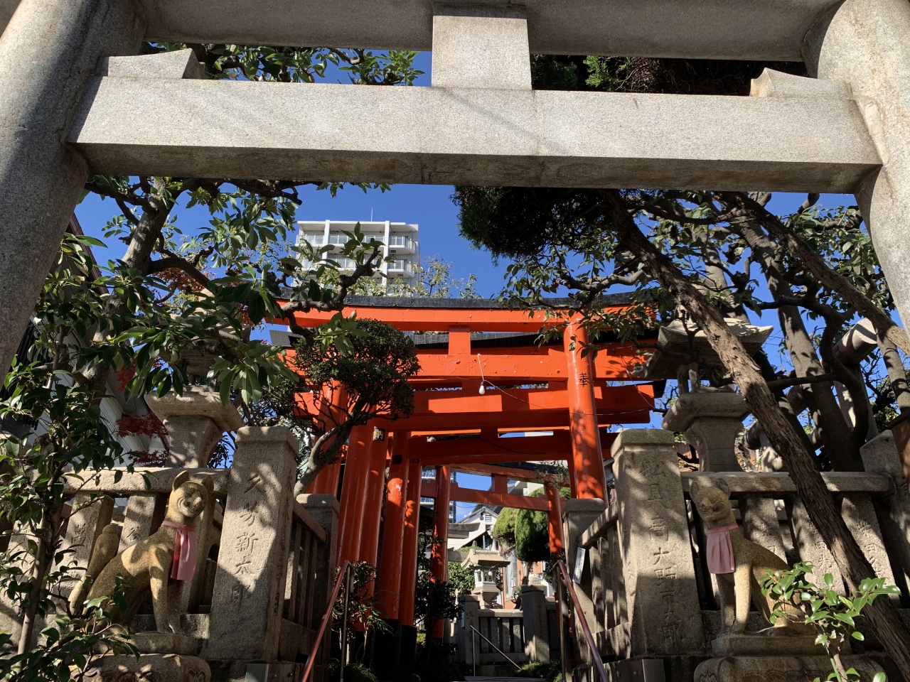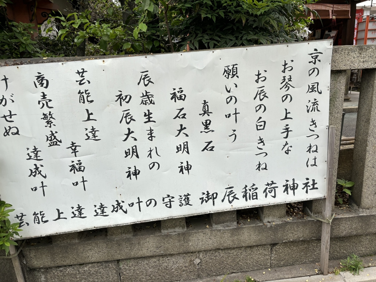 小さな境内ですが、御辰稲荷神社の「辰」が「達」となり、芸事の神様として信仰を集めています。