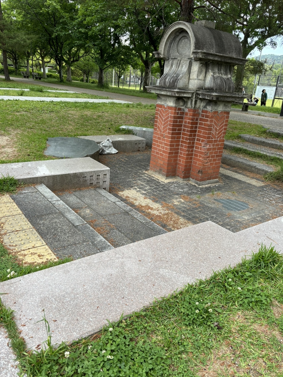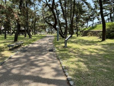 松林が続く公園の中は静かで、遺跡もかつてありました。縄文・弥生時代の土器や石器、古墳時代の人骨が埋葬された埴輪棺も発見されています。