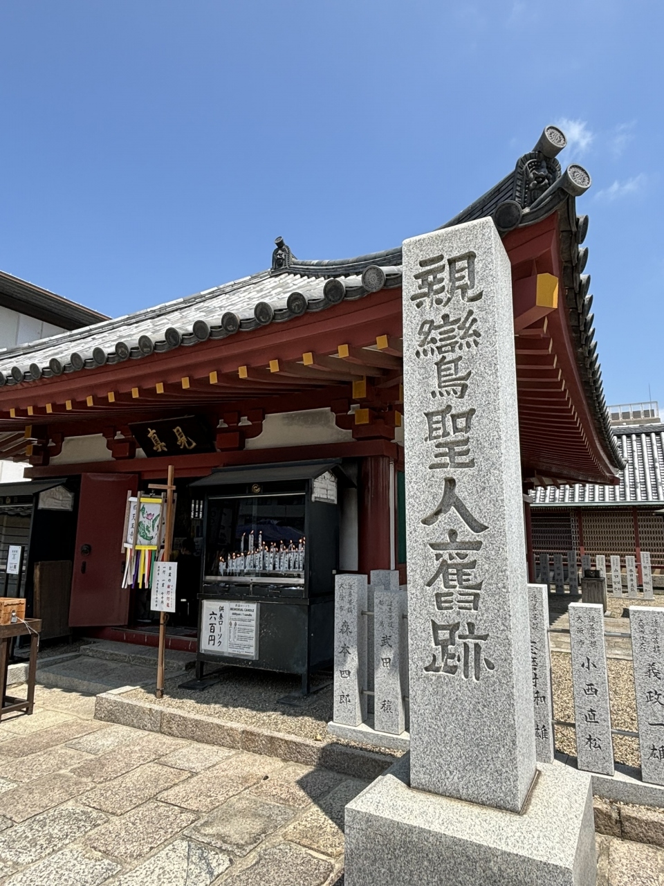 浄土真宗の開祖 親鸞聖人を称え、功績を後世に伝えるために造られたお堂といわれています。本尊は阿弥陀如来像です。赤い建物がとてもあでやかでした。