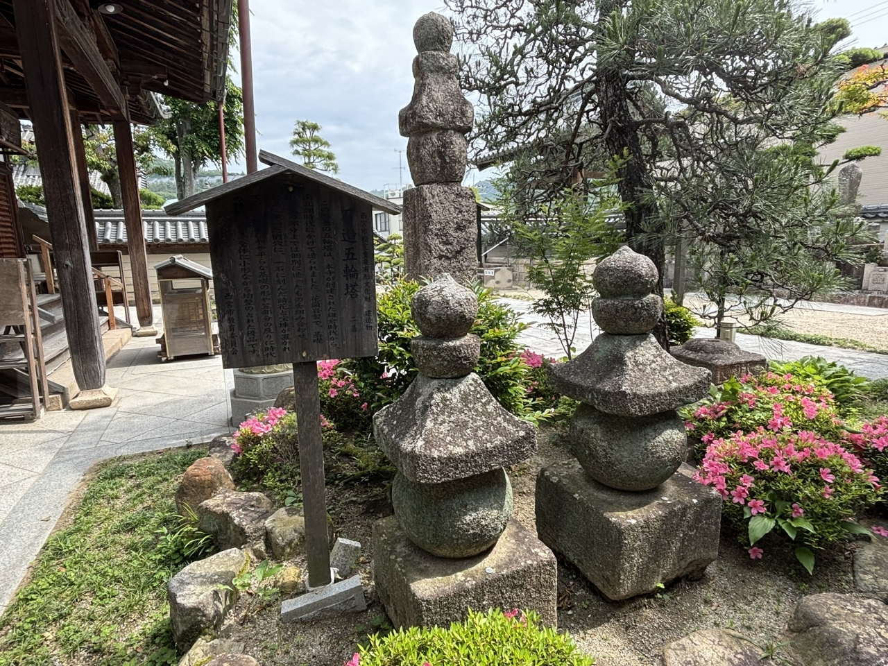 お墓の左側には室町時代後期の無縫搭と十三仏板碑があります。