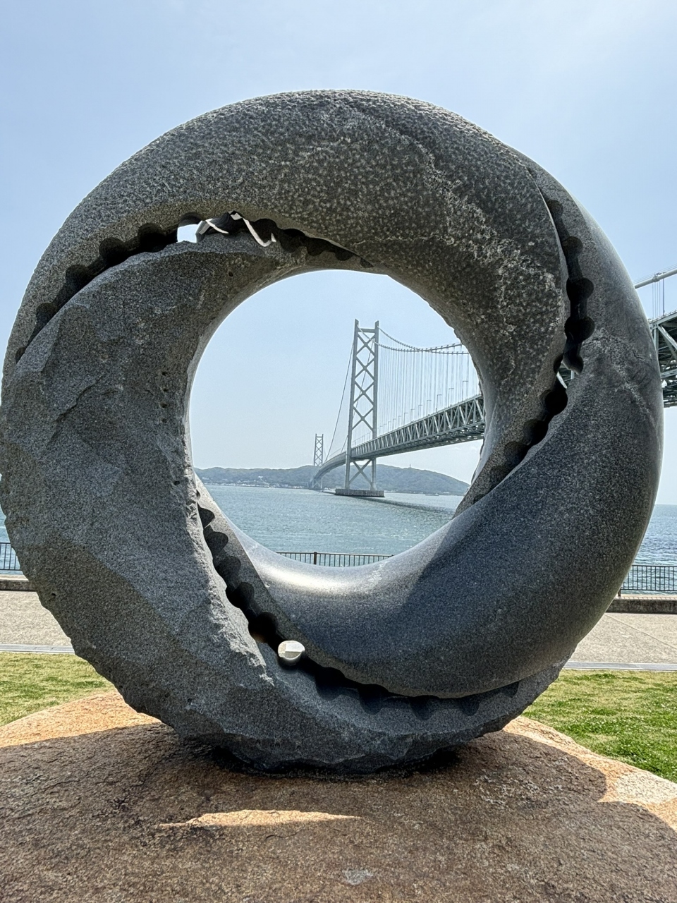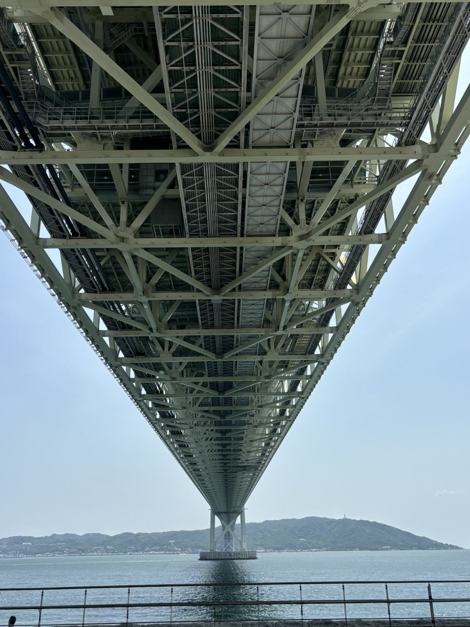 半世紀かけて完成した明石海峡大橋の雄大な風景と海、淡路島の光景を眺めたり、