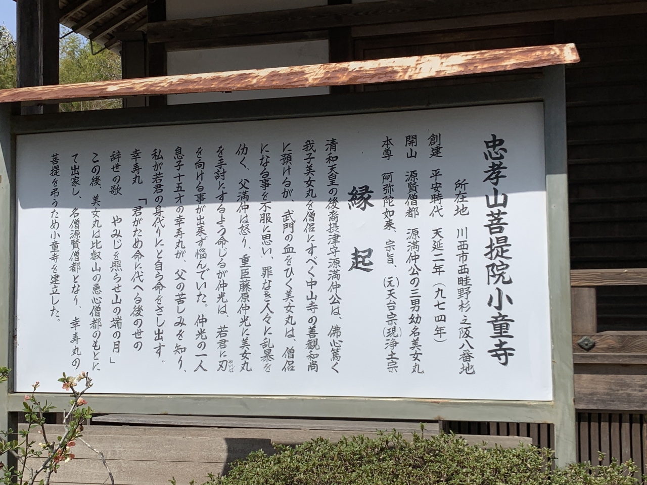 お寺の縁起によると、源満仲の子供の美女丸が中山寺に修行のために預けられましたが