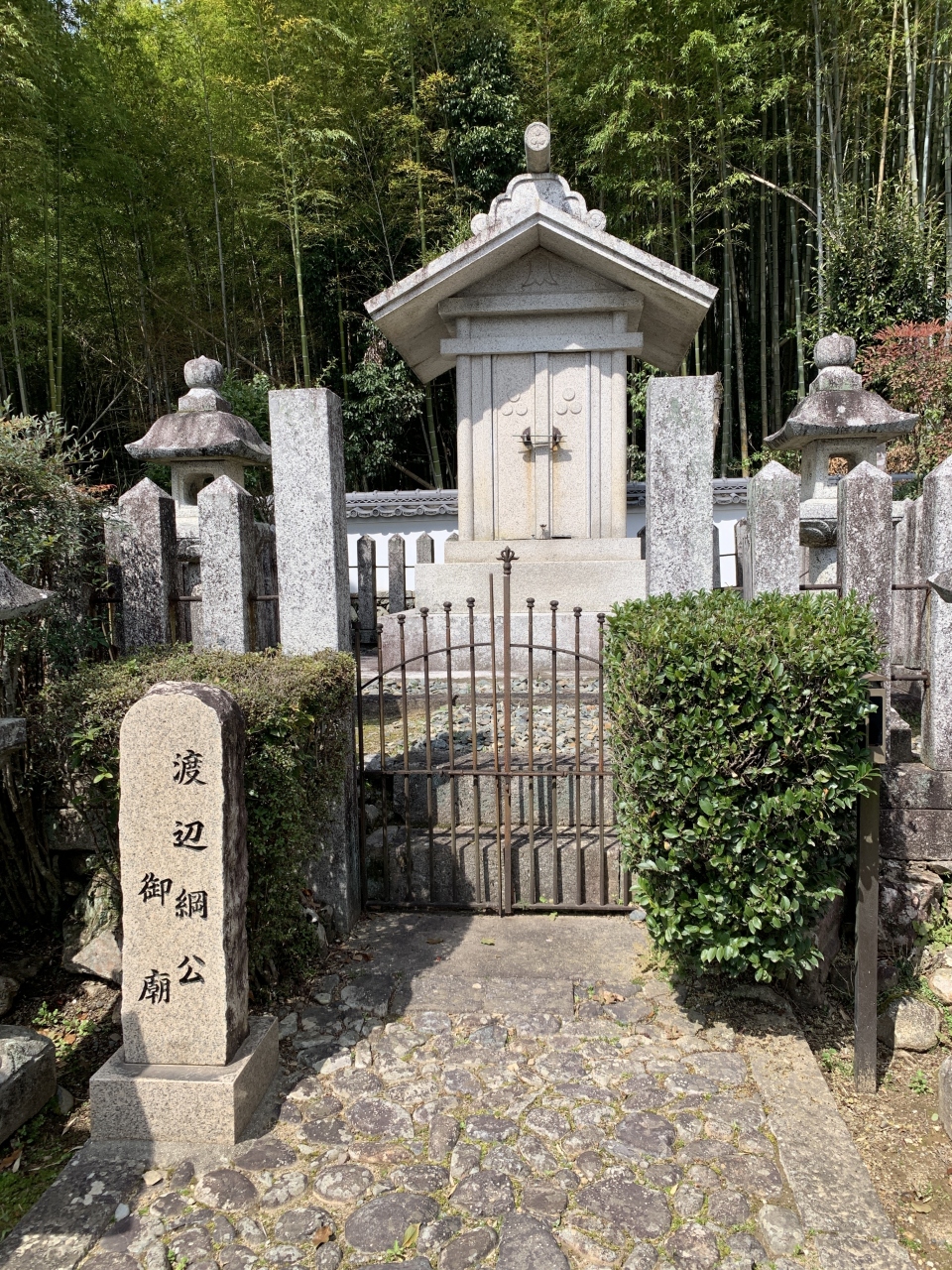 境内には、美女丸、幸女丸、藤原仲光の供養塔、また渡辺氏の祖先となった渡辺綱の廟があります。渡辺綱は源頼光の家来で、大江山の酒呑童子を退治したことで知られる、