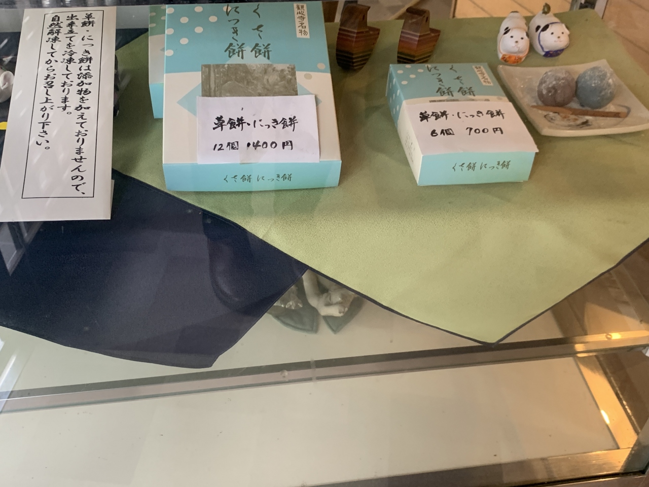 訪れたときは、にっき餅とくさ餅をお土産に購入しました。添加物などが入っていないので、作りたてをすぐに冷凍するそうで、持ち帰ったときも冷凍でした。