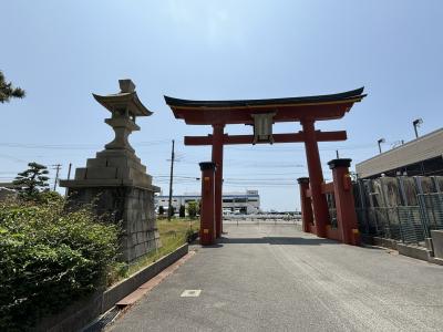 大鳥居の周辺はかつて砂浜だったそうです。いまは、漁港や建物、駐車場になっています。- 旅行時期