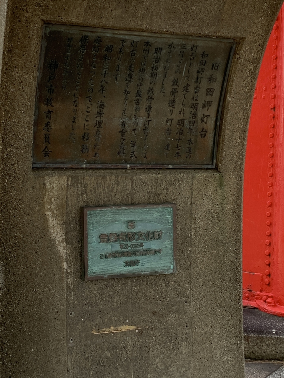 1884年に木像から鉄骨の灯台に作り替えられたもので、明治期の鉄骨灯台としては現存の最古のものだそうです。名前から、もともとは和田岬にあったものですが、1963年に灯台として使われなくなってからは須磨海浜公園に移されて保存されています。