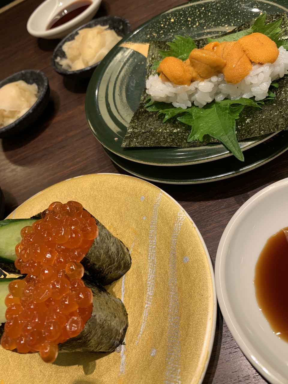 創作のお寿司の種類も多いです。デザートやお味噌汁、麺ものなども美味しいです。- 旅行時期
