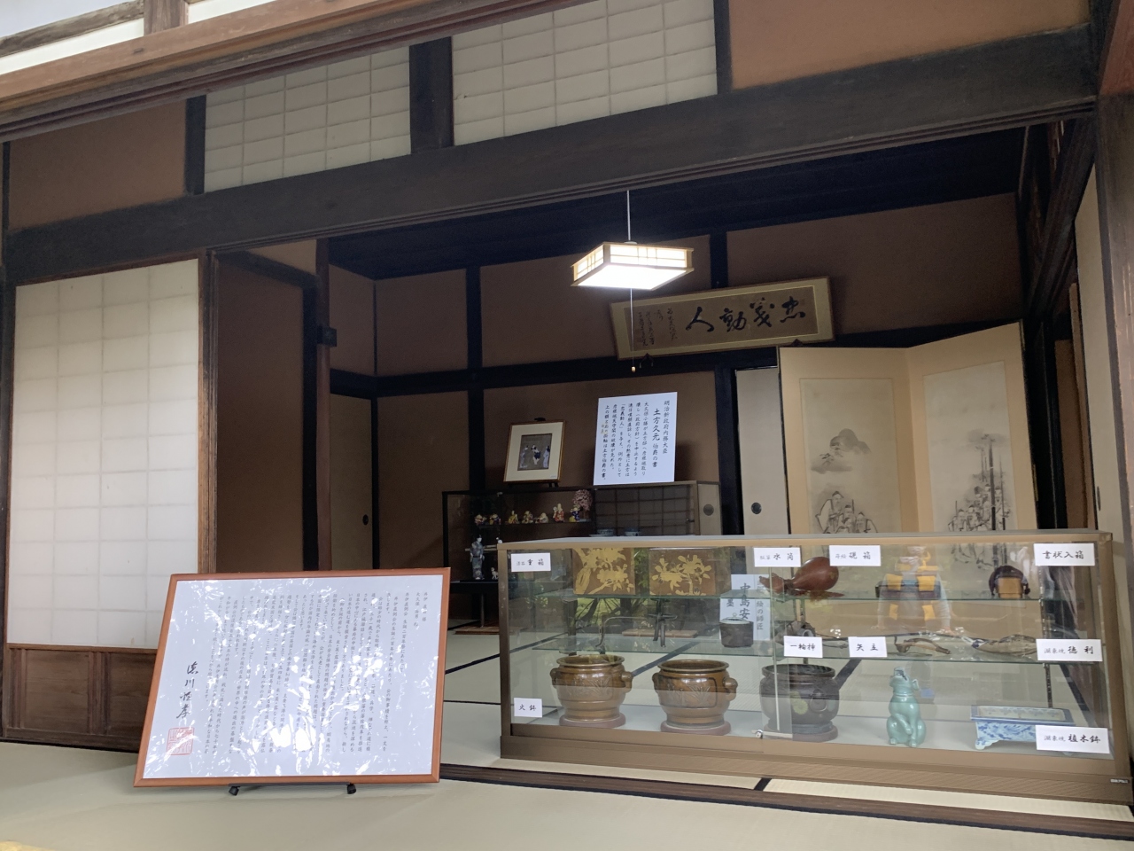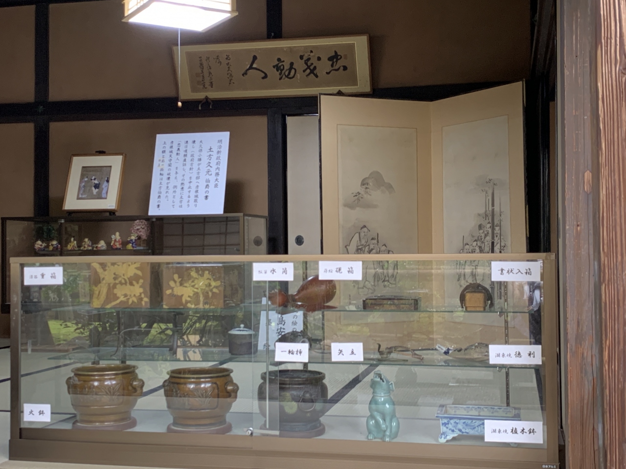 ここでの生活の中で、剣術、馬術、茶道、和歌、謡曲、さらに政治などの学びも続けています。茶室もあり、井伊直弼が使った茶器や調度品なども展示されています。
