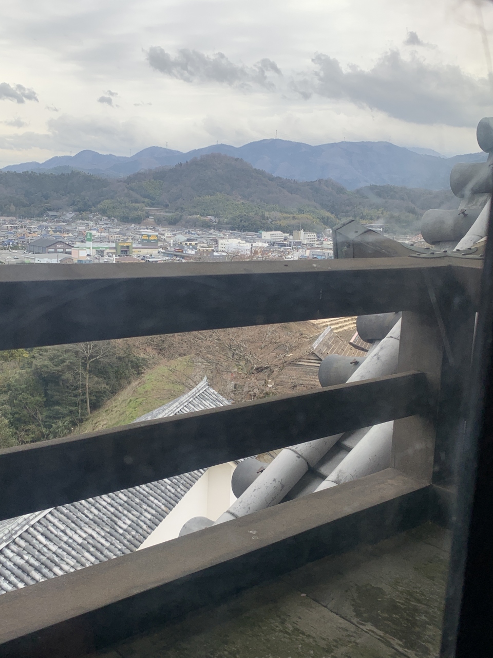 優美な形の天守のお城ですが、軍事的な防衛も優れており、外からは平時には見えない工夫があり、鉄砲、矢狭間が82か所もあります。非常時には壁を突き破って使用するそうです。また二重の壁で兵士を守る工夫もあります。隠し部屋もありました。