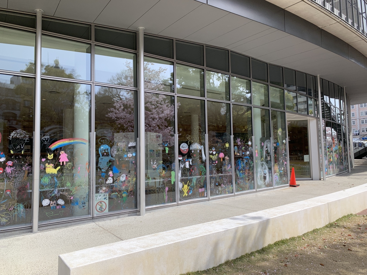 可愛い雑貨のお店や展覧会やイベントの催し物があります。外の公園の桜がとても綺麗でした。